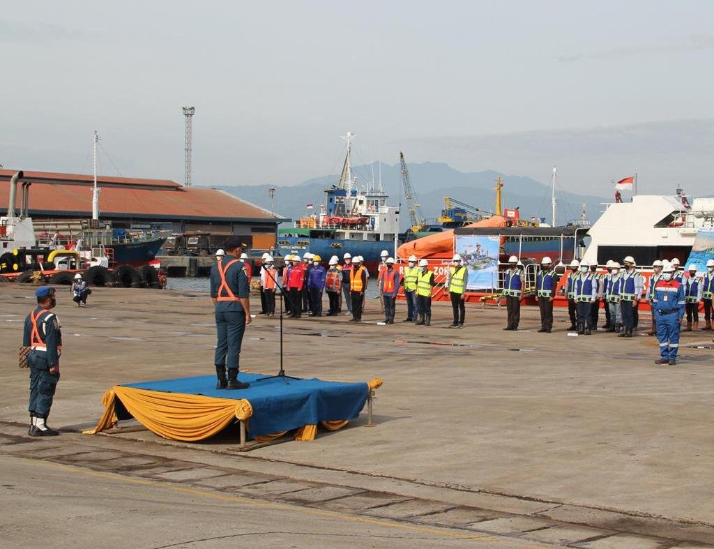 Kementerian Perhubungan Cq. Direktorat Jenderal Perhubungan Laut melalui Kantor Kesyahbandaran dan Otoritas Pelabuhan (KSOP) Kelas I Panjang – Lampung menggelar upacara peringatan Bulan Keselamatan dan Kesehatan Kerja (K3) Nasional Tahun 2022 yang ke – 52 dengan mengusung tema “Penerapan Budaya K3 Pada Setiap Kegiatan Usaha Guna Mendukung Perlindungan Tenaga Kerja di Era Digitalisasi,” dilaksanakan di Dermaga B Pelabuhan Panjang Bandar Lampung, Kamis (27/1/2022).