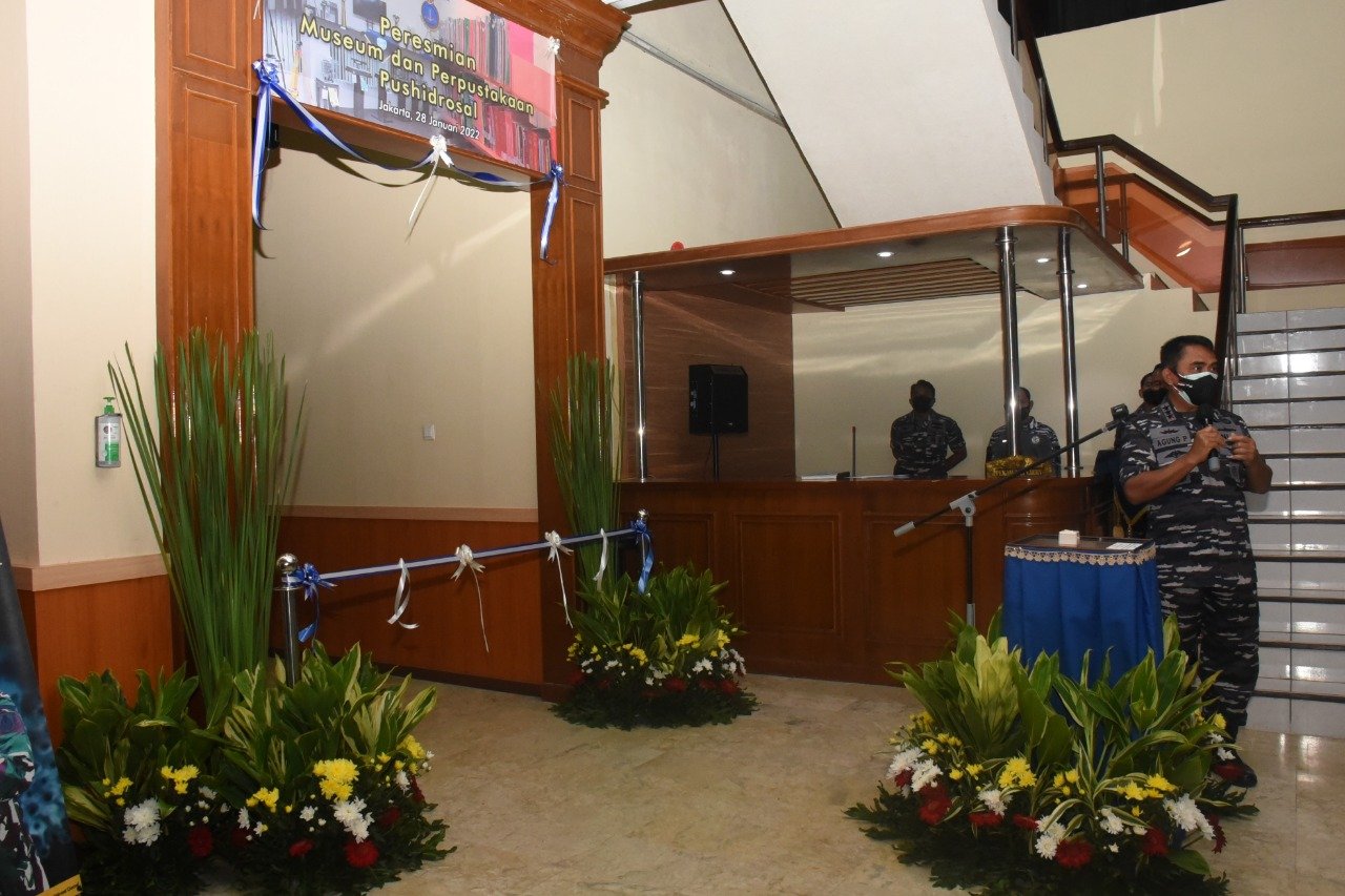 Komandan Pusat Hidro-Oseanografi TNI Angkatan Laut (Danpushidrosal) Laksamana Madya TNI Dr. Agung Prasetiawan, M.A.P.didampingi pejabat teras Pushidrosal, secara resmi meresmikan Gedung Museum dan Perpustakaan Pushidrosal di Mako Pushidrosal, Jalan Pantai Kuta V/I, Ancol Timur, Jakarta Utara. Jum’at (28/1/2022).