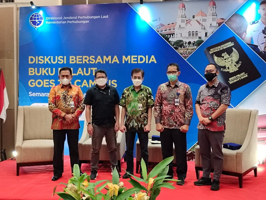 Kementerian Perhubungan Cq Direktorat Jenderal Perhubungan Laut melalui Direktorat Perkapalan dan Kepelautan bersama Kantor Syahbandar dan Otoritas Pelabuhan Kelas I Tanjung Emas dan Direktur Politeknik Ilmu Pelayaran (PIP) Semarang menyelenggarakan acara Diskusi Bersama Media dengan tema Buku Pelaut Goes To Campus, di Semarang – Jawa Tengah, hari Jumat (28/1/2022)
