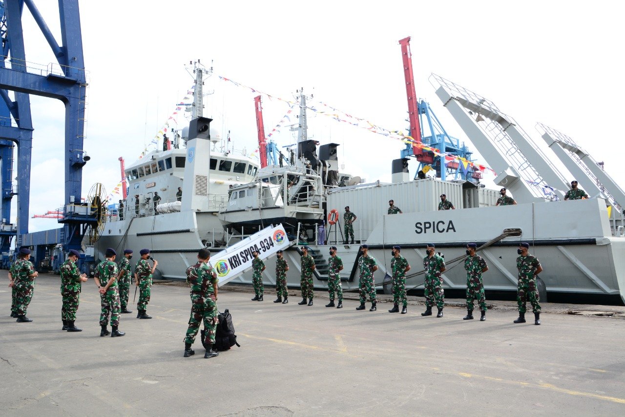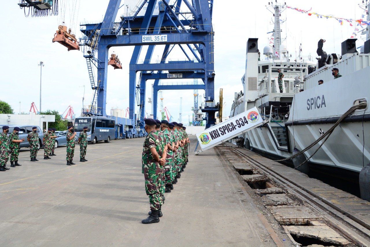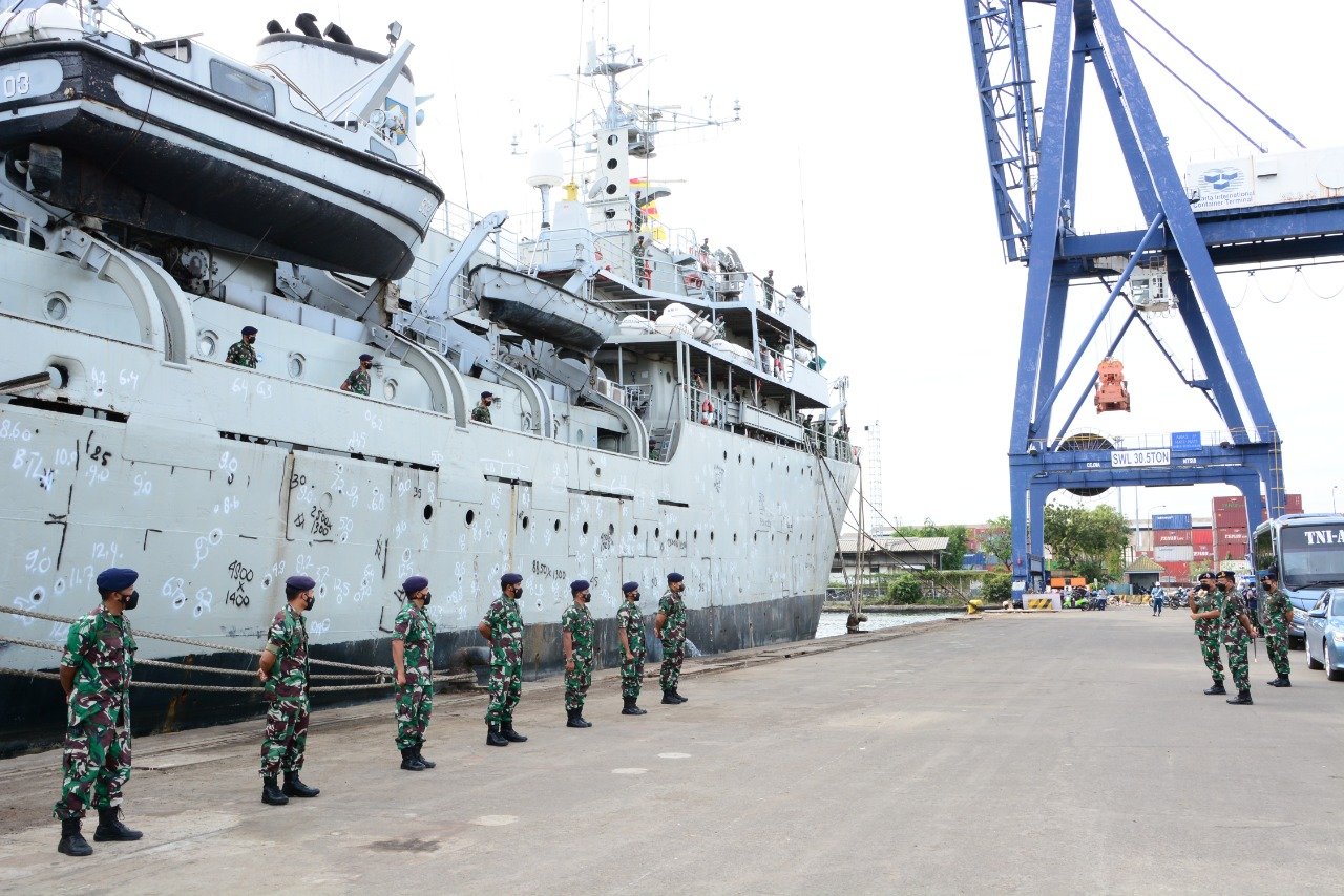 Menjelang serah terima jabatan (Sertijab) Komandan Pushidrosal dari Laksamana Madya TNI Dr. Agung Prasetiawan, M.A.P. kepada Laksamana Madya TNI Nurhidayat, S.H., M.A.P, kedua pejabat melaksanakan Admiral Inspection kapal-kapal perang yang tengah sandar di Dermaga Jakarta International Container Terminal (JICT) 2 Tanjung Priok Jakarta Utara, Senin (31/1/2022).