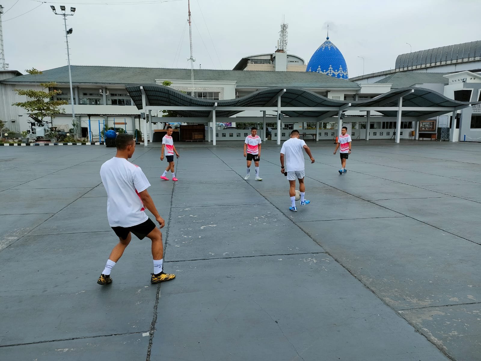 Meski laga final kompetisi futsal HUT ke-61 Kolinlamil baru digelar minggu depan, Tim KRI Teluk Hading-538 sebagai finalis mulai menyiapkan diri dengan menggelar latihan futsal di Lapangan Mulyono Silam, Mako Kolinlamil, Minggu pagi (13/2/2022).