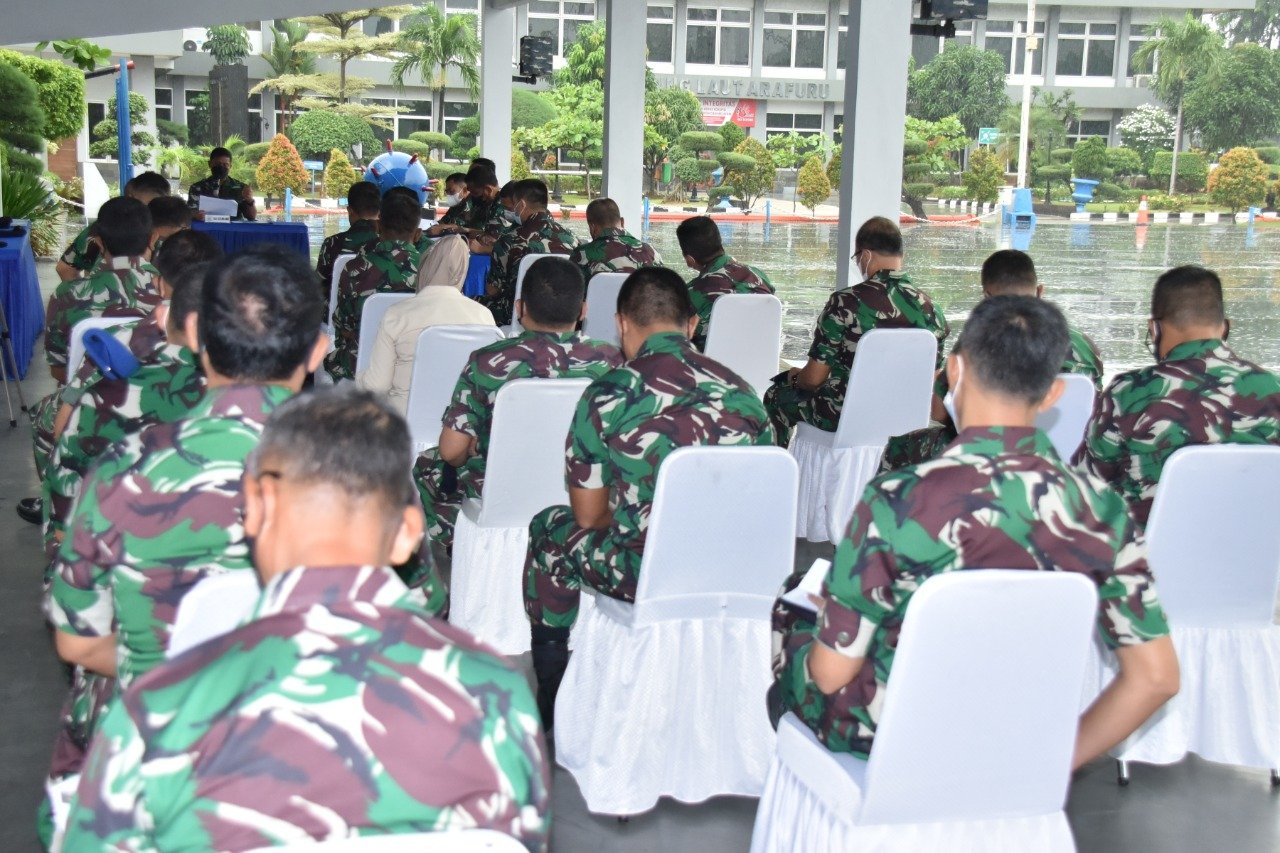 Kepala Staf Kolinlamil Laksma TNI Retiono Kunto menyampaikan pengarahan kepada para Perwira agen perubahan (Agent of Change) reformasi birokrasi jajaran Kolinlamil. Acara berlangsung di Awning Selatan Mako Kolinlamil diikuti oleh para Pejabat Utama dan Kasatker Kolinlamil serta Perwira Menengah yang ditunjuk sebagai Agent of Change, Senin (14/2/2022).