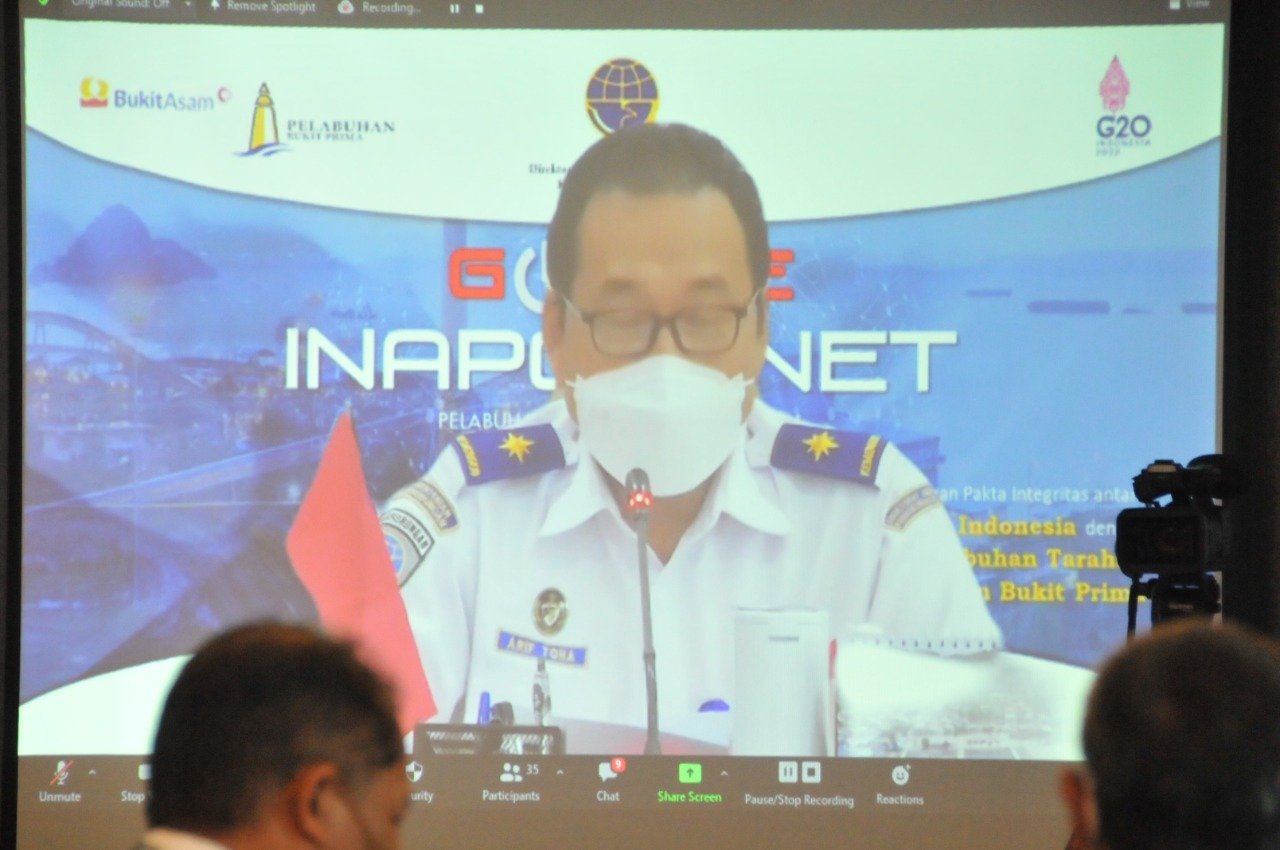 Dalam kesempatan yang sama, Plt. Direktur Jenderal Perhubungan Laut Arif Toha menyampaikan selamat atas komitmen bersama yang tertuang dalam Pakta Integritas untuk menjalankan kolaborasi dalam aplikasi Inaportnet untuk layanan kapal dan barang di TUKS Bukit Asam Unit Pelabuhan Tarahan.