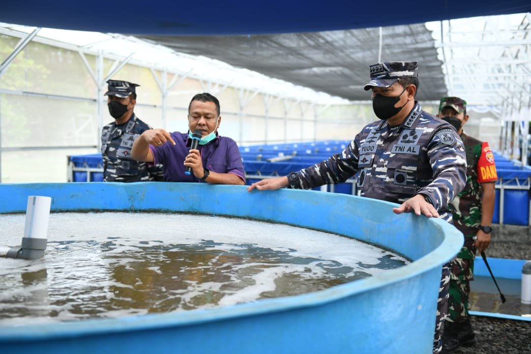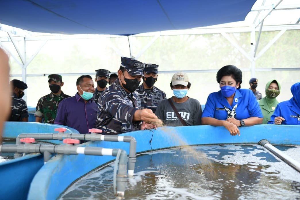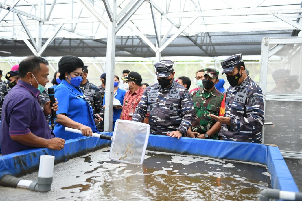 Jalesveva Jayamahe, Kepala Staf Angkatan Laut (Kasal) Laksamana TNI Yudo Margono didampingi Ketua Umum Jalasenastri Ny. Vero Yudo Margono melaksanakan peninjauan ke Laboratorium Indonesian Naval Aquagriculture Program (INAP) yang merupakan program pengembangan budidaya laut terbaru karya anak bangsa, di Desa Lovina, Kota Singaraja, Kab. Buleleng, Bali Selasa (22/2/2022).