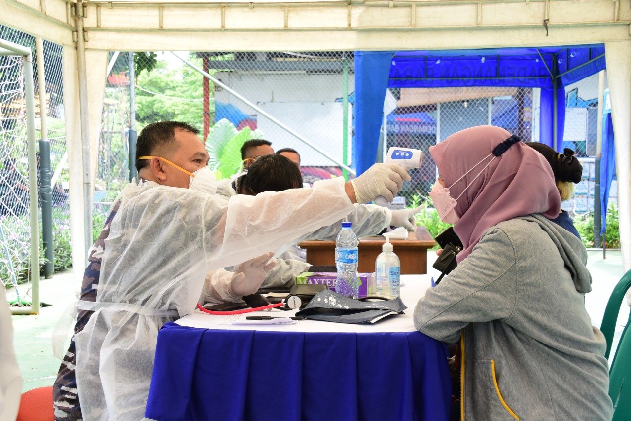 TNI AL terus menggelar Serbuan Vaksinasi Covid-19 bagi masyarakat maritim dan pesisir di seluruh wilayah Indonesia guna turut menyukseskan program yang dicanangkan pemerintah dalam percepatan penanggulangan pandemi Covid-19 dan pencapaian target vaksinasi nasional.