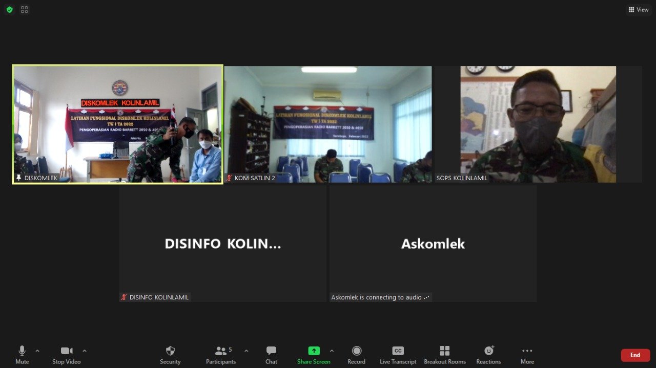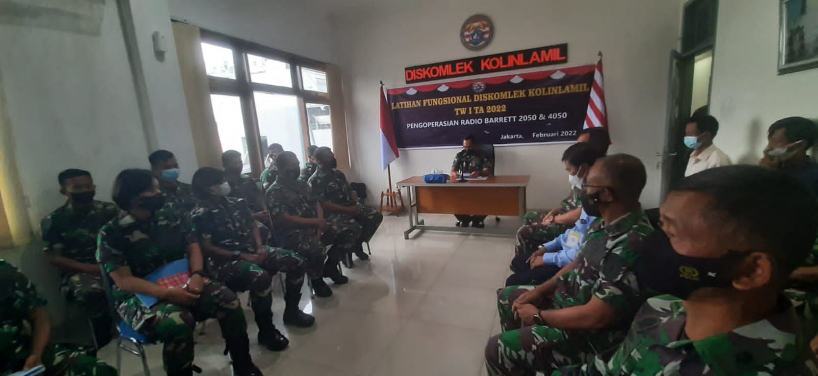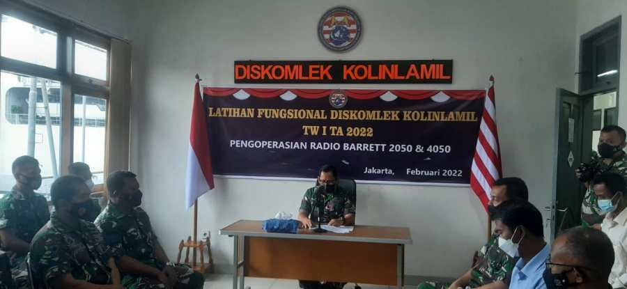 Kegiatan latihan fungsional komunikasi Triwulan I tahun 2022 dengan materi pengoperasian radio Barret type 2050 dan 4050 ditutup oleh Kepala Dinas Komunikasi dan Elektronika Komando Lintas Laut Militer Kolonel Laut (E) Gesit Pratiknyo di Gedung Laut Sulu, Mako Kolinlamil, Jakarta Utara, Selasa (1/3/2022).