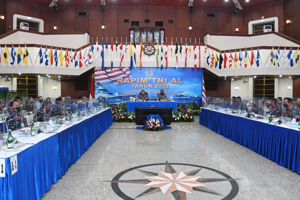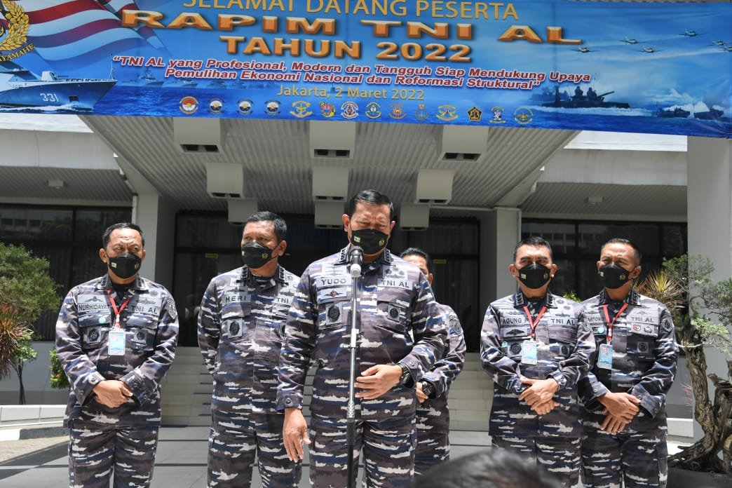 Jalesveva Jayamahe, Kepala Staf Angkatan Laut (Kasal) Laksamana TNI Yudo Margono membuka Rapat Pimpinan (Rapim) TNI Angkatan Laut (TNI AL) tahun 2022 bertempat di Auditorium Detasemen Markas (Denma) Markas Besar Angkatan Laut (Mabesal), Cilangkap, Jakarta Timur, Rabu Pagi (2/3/2022).
