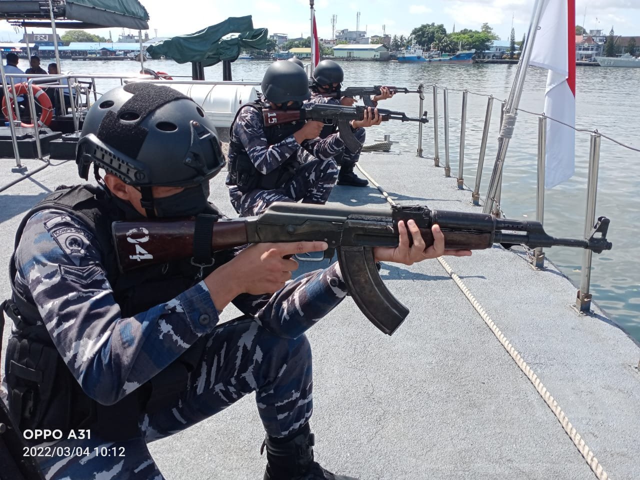 Prajurit Satuan Lintas Laut Militer 3 meningkatkan pengetahuan, kemampuan dan ketrampilannya dalam melakukan aksi penanggulangan terhadap tindak pidana dan pelanggaran hukum di laut melalui latihan Visit Boarding Search Seizure (VBSS) di dermaga breakwater Lantamal VI Makassar, Jumat (4/3/2022).