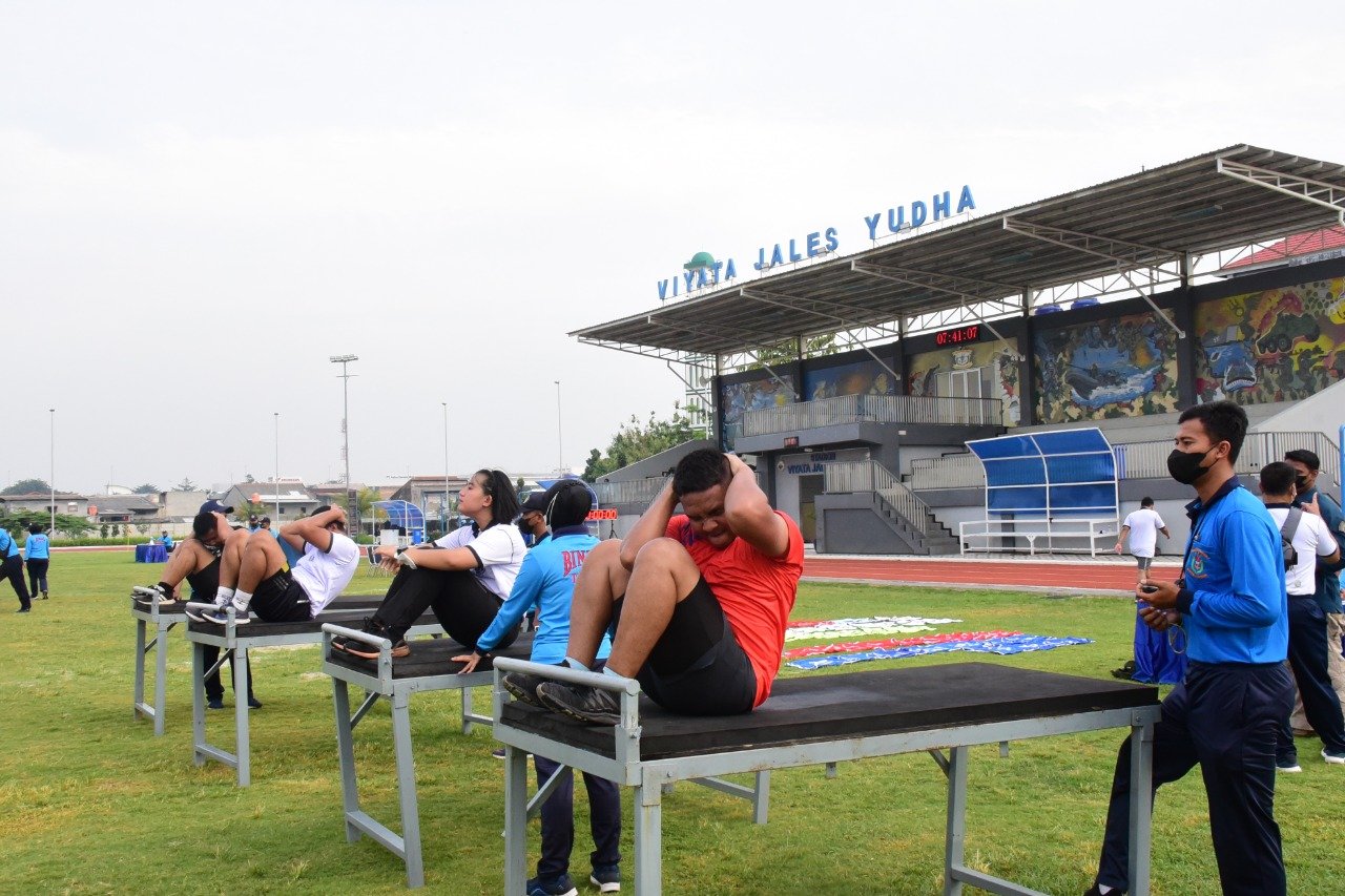 Untuk mengantisipasi timbulnya kejadian yang tidak diinginkan, sebelum melaksanakan tes samapta seluruh peserta melaksanakan pemeriksaan kesehatan dilanjutkan pemanasan. Adapun materi garjas terdiri dari Batterai A Lari 12 menit, Baterai B meliputi Pull up ,Sit up dan Shuttle Run dilanjutkan dengan baterai C meliputi tes renang sejauh 50 meter.