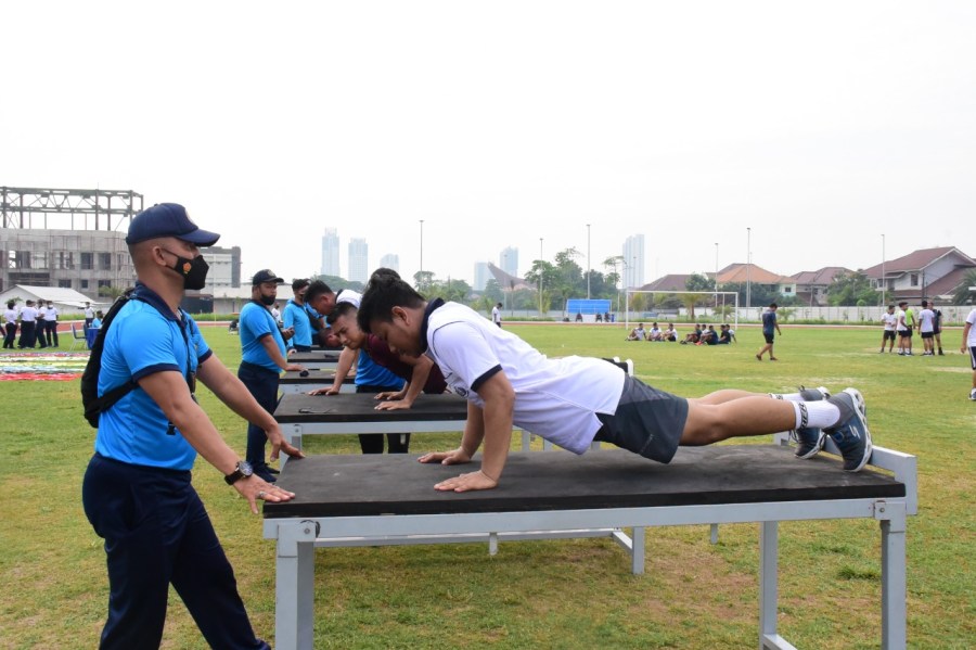 Untuk mengantisipasi timbulnya kejadian yang tidak diinginkan, sebelum melaksanakan tes samapta seluruh peserta melaksanakan pemeriksaan kesehatan dilanjutkan pemanasan. Adapun materi garjas terdiri dari Batterai A Lari 12 menit, Baterai B meliputi Pull up ,Sit up dan Shuttle Run dilanjutkan dengan baterai C meliputi tes renang sejauh 50 meter.