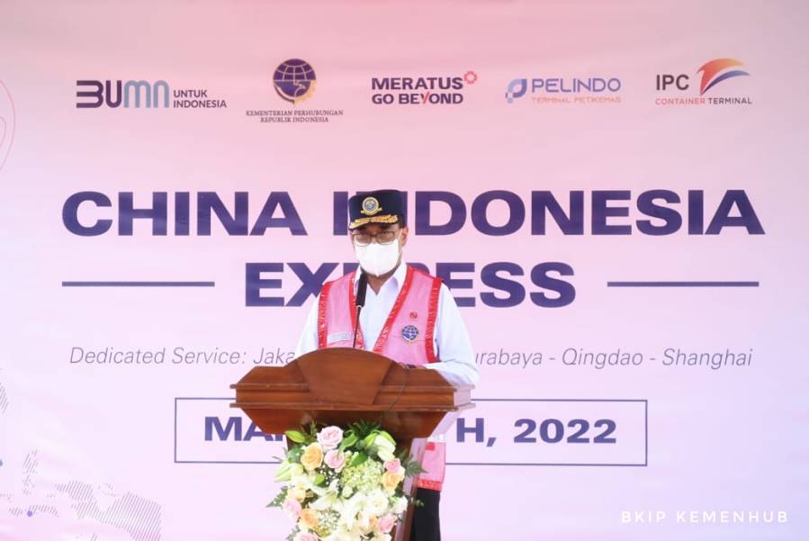 Hal tersebut disampaikan Menhub saat menghadiri peluncuran perdana rute ekspor Indonesia – China yang dilakukan oleh perusahaan pengiriman PT. Meratus Line bekerja sama dengan operator Pelabuhan PT. Pelindo, hari ini Senin (14/3/2022) di Terminal Peti Kemas, Pelabuhan Tanjung Priok.