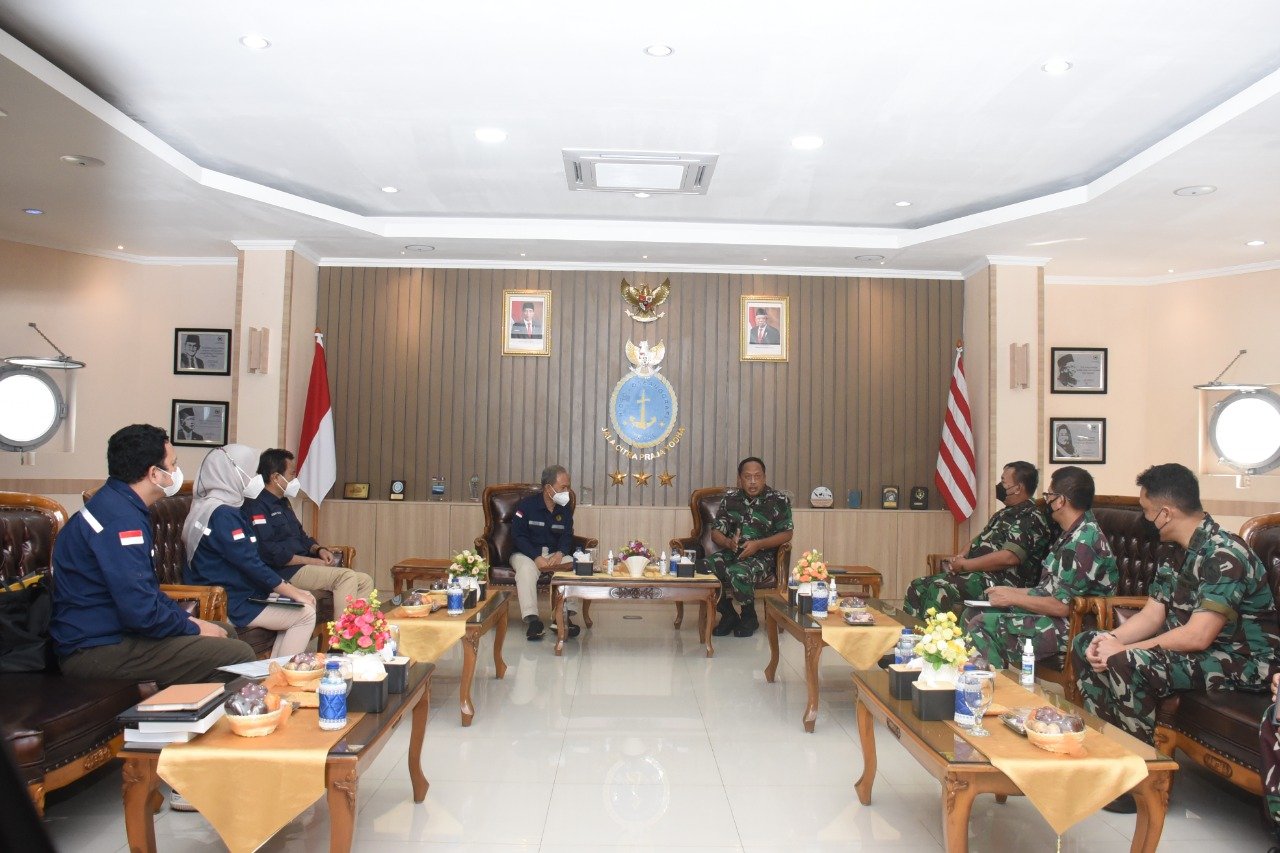 Kunjungan Kerja Kepala Badan Geologi Dr. Eko Budi Lelono yang didampingi beberapa staf tersebut diterima Komandan Pushidrosal Laksamana Madya TNI Nurhidayat yang didamping Wadanpushidrosal Laksamana Muda TNI Budi Purwanto, ST., M.M., dan beberapa staf terkait di Anjungan Utama Pushidrosal, Ancol Timur, Jakarta Utara, Rabu (16/3/2022)