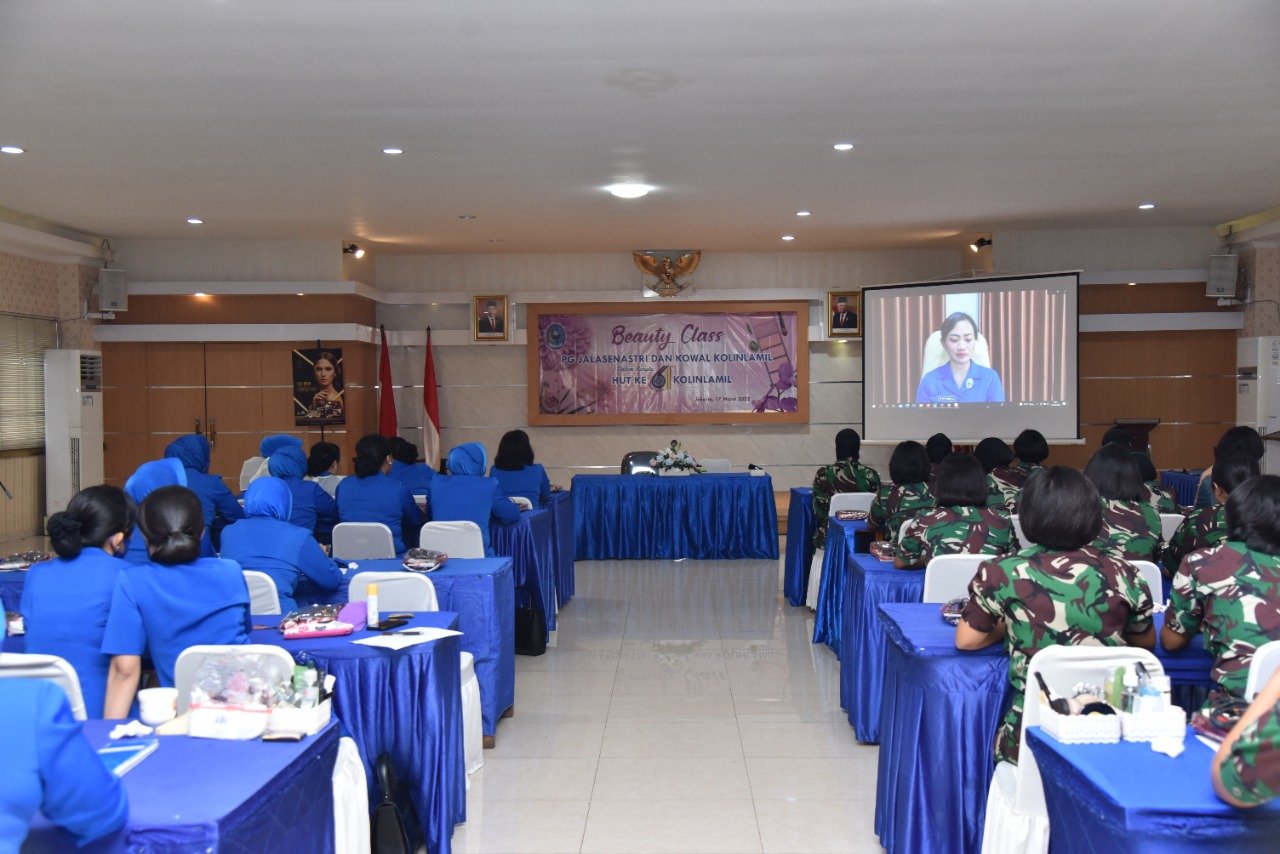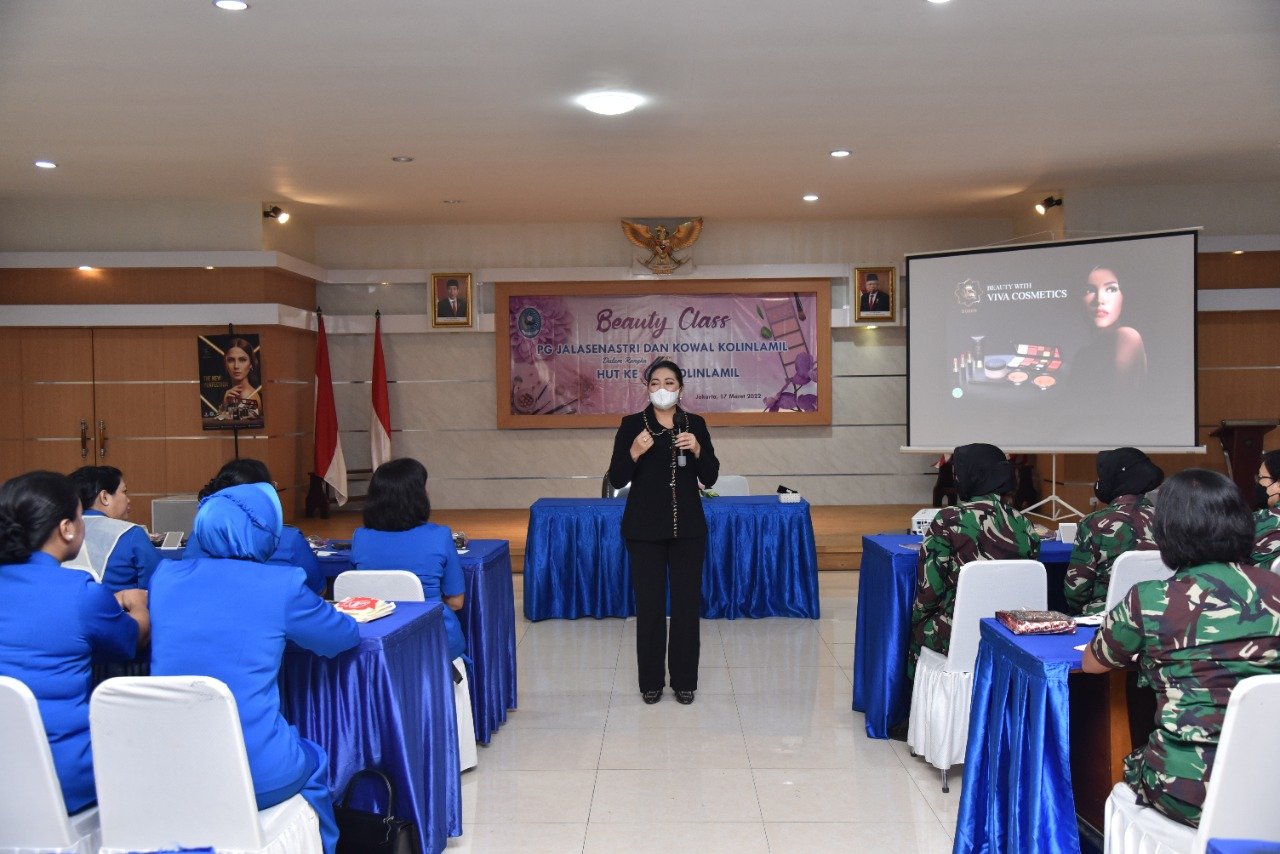 Untuk mendukung penampilan sehingga mampu menciptakan rasa percaya diri dalam setiap kegiatan, Pengurus Gabungan Jalasenastri Komando Lintas Laut Militer mengadakan kegiatan Beauty Class di Gedung Laut Natuna lantai 3, Mako Kolinlamil, Jakarta Utara, Kamis (17/3/2022). Acara ini masuk dalam agenda kegiatan peringatan Hari Ulang Tahun ke-61 Komando Lintas Laut Militer tahun 2022.