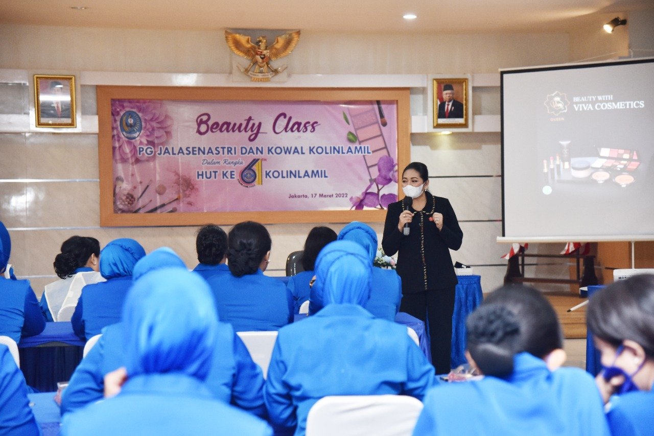 Dalam sambutannya, Ketua Gabungan Jalasenastri Kolinlamil menyampaikan kegiatan Beauty Class diselenggarakan dengan tujuan untuk meningkatkan kreatifitas dan wawasan dalam bertata rias serta berbenah lebih baik lagi. Sehingga memunculkan rasa percaya diri dalam setiap kegiatan.