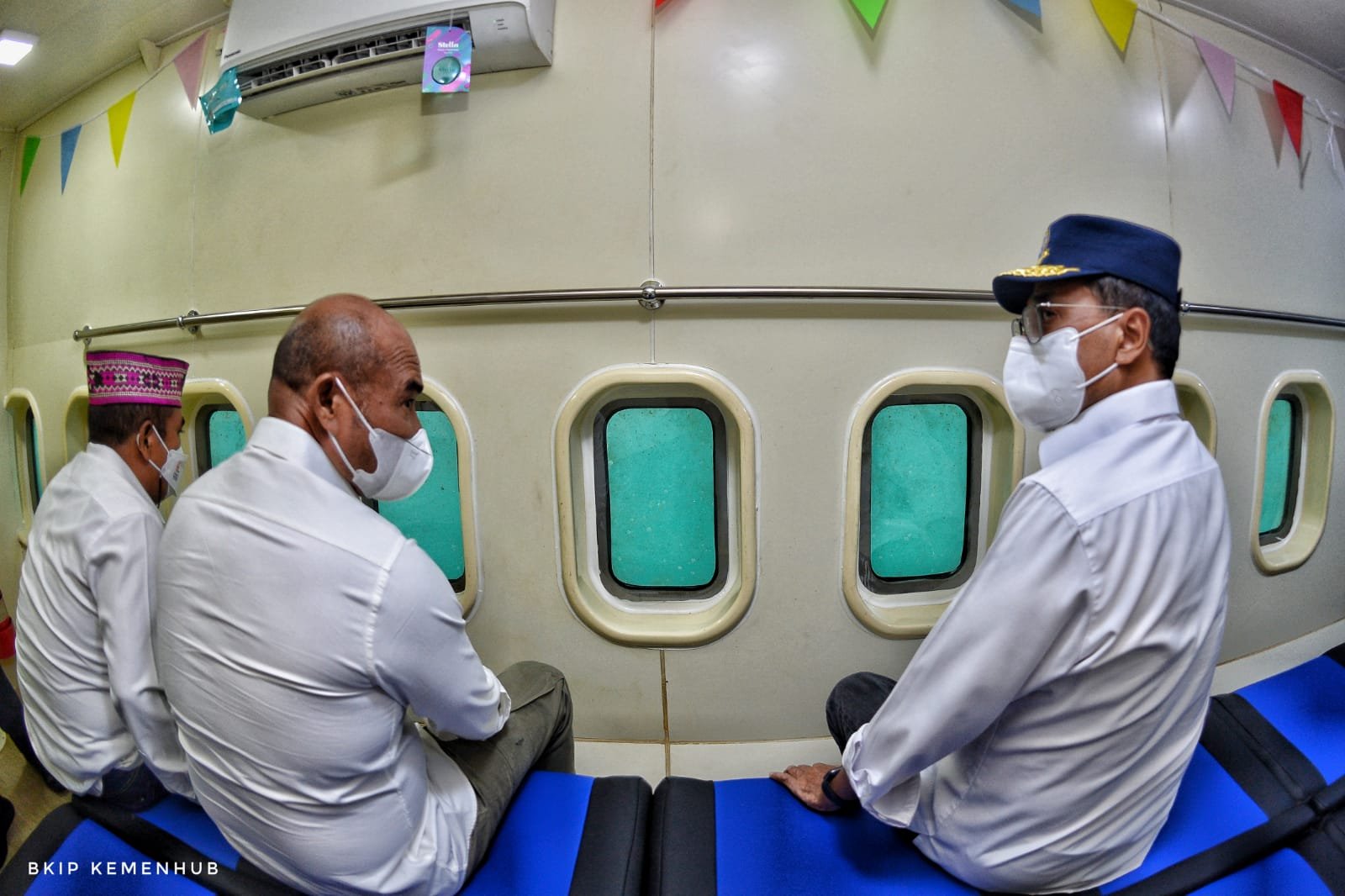 Turut hadir dalam kegiatan peresmian, Bupati Manggarai Barat NTT Edistasius Endi, Dirjen Perhubungan Udara Novie Riyanto dan Plt. Direktur Jenderal Perhubungan Laut, Mugen Suprihatin Sartoto. (MM-01)