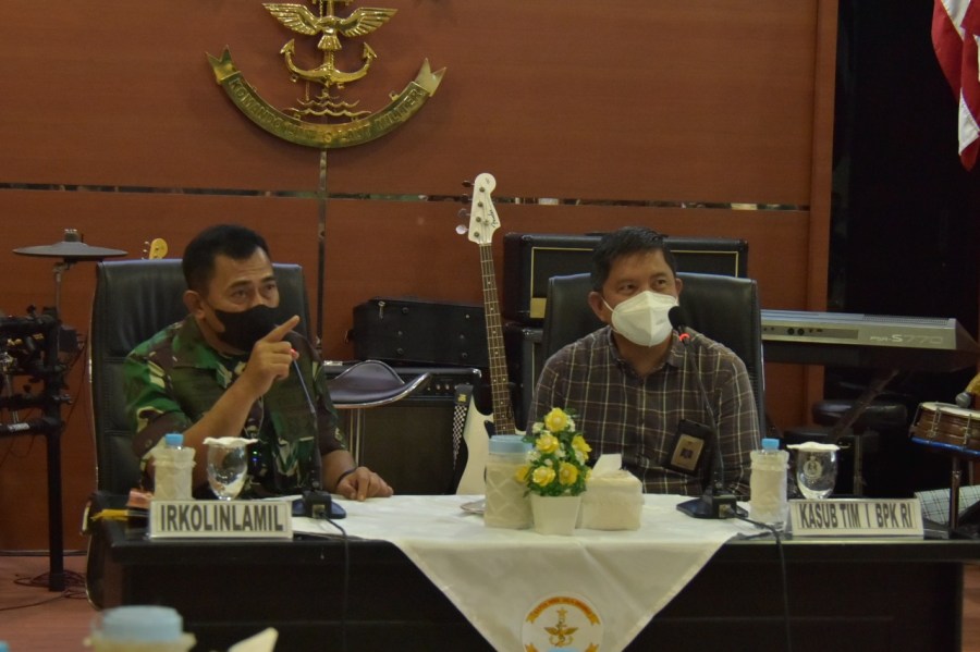 Komando Lintas Laut Militer menerima kedatangan Tim Pengawasan Pemeriksaan (Wasrik) dari Badan Pemeriksaan Keuangan Republik Indonesia, di Officer Club, Mako Kolinlamil, Tanjung Priok, Jakarta Utara, Kamis (24/3/2022).