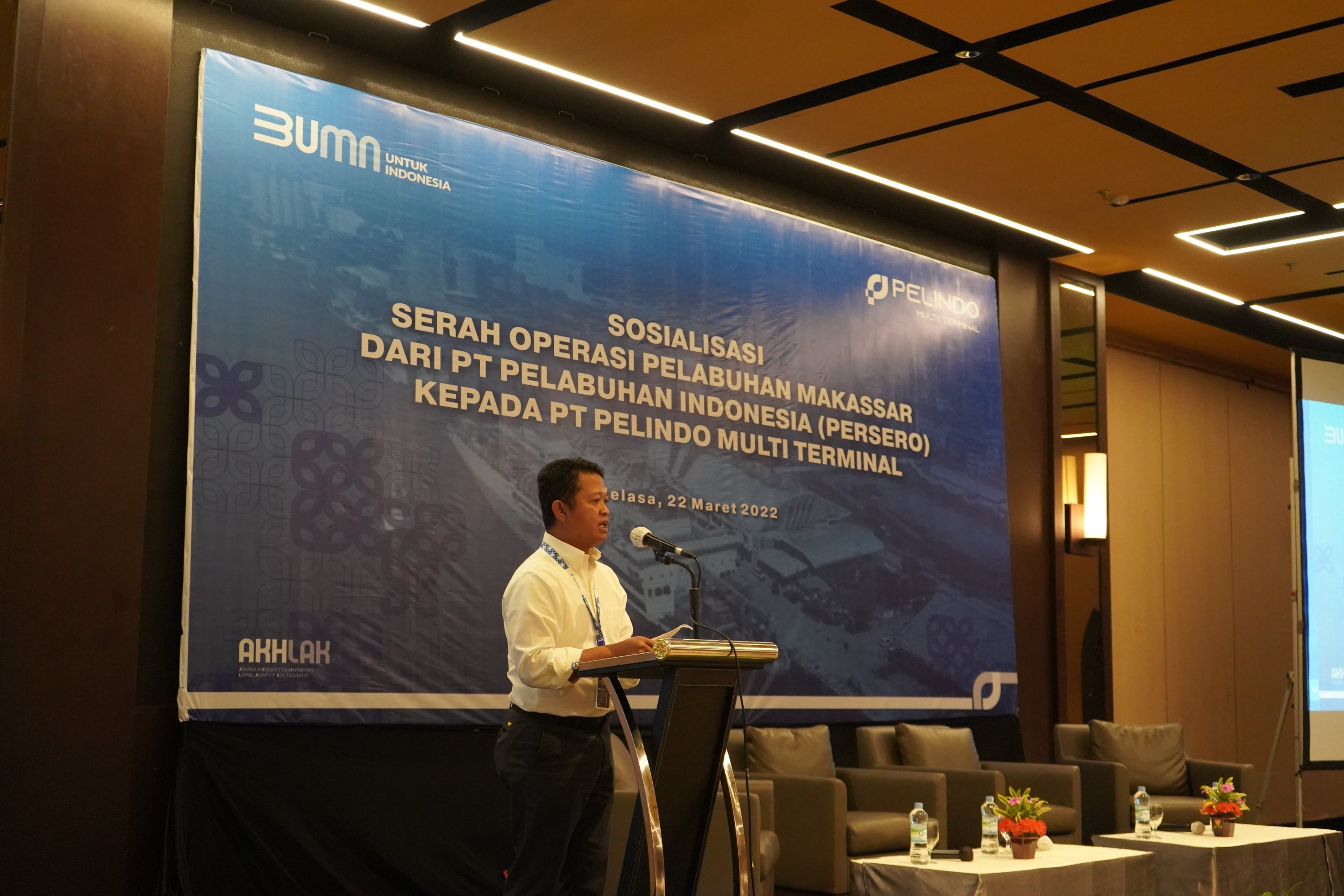 PT Pelabuhan Indonesia (Persero) atau Pelindo melakukan sosialisasi serah terima operasi Pelabuhan Makassar kepada PT Pelindo Multi Terminal untuk peningkatan kualitas pelayanan pelabuhan yang lebih baik lagi.