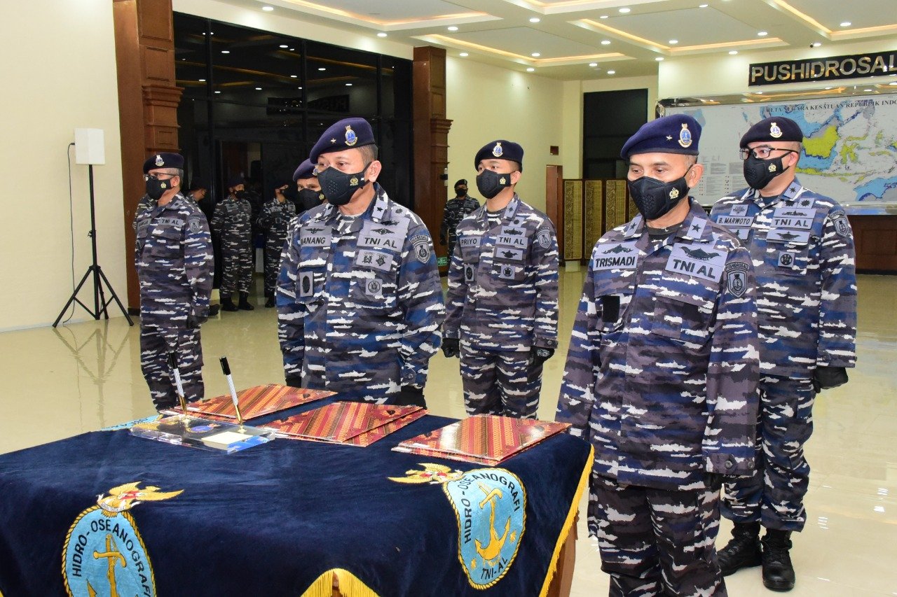 Ketiga jabatan yang diserahterimakan yakni jabatan Irpushidrosal dari Laksamana Pertama TNI Nanang Eko Ismurdianto, S.Sos., M.M., CFrA, CRMP Kepada Laksamana Pertama TNI Dr. Trismadi, jabatan Kadisosemet dari Kolonel Laut (KH) Kamija kepada Kolonel Laut (KH) Nawanto Budi Sukoco, dan Koorsmin Danpushidrosal dari Kolonel Laut (P) Priyo Dwi Saputro kepada Kolonel Laut (P) Bambang Marwoto.