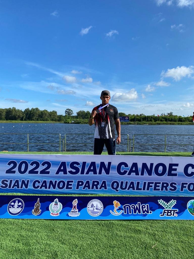 Salah satu prajurit Komando Lintas Laut Militer yang tergabung dalam tim nasional dayung Indonesia berhasil meraih prestasi pada kejuaraan Lomba Dayung “2022 Asian Canoe Championship” di Thailand, 24-26 Maret 2022.