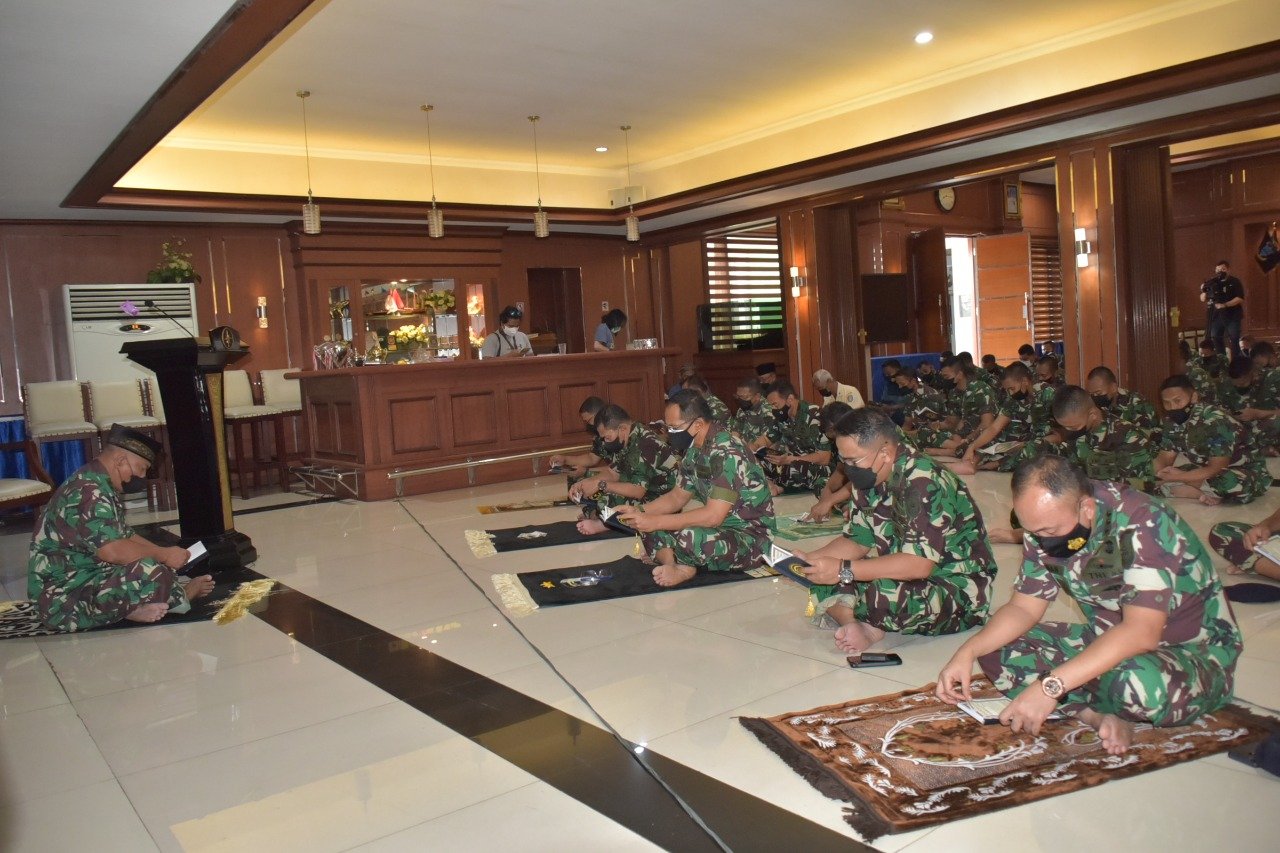Panglima Komando Lintas Laut Militer Laksda TNI Erwin S. Aldedharma bersama seluruh prajurit Kolinlamil dengan penuh khusyuk mengikuti doa bersama. Dari wajah para prajurit penjelajah samudera tersirat dengan jelas wajah kesedihan mengingat 2 rekan mereka gugur dalam penugasan akibat diserang oleh anggota Kelompok Separatis Teroris Papua (KSTP).