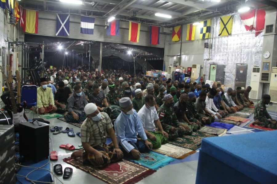 Kondisi laut yang sedikit berombak sehingga menimbulkan goyangan tidak menyurutkan para prajurit yang beragama Islam yang saat itu on board di KRI BJM-592 untuk melaksanakan ibadah sholat tarawih secara berjamaah. Serasa berada di masjid, kegiatan ibadah tersebut diawali dengan sholat Isya berjamaah dilanjutkan dengan ceramah agama dan ditutup dengan sholat tarawih.
