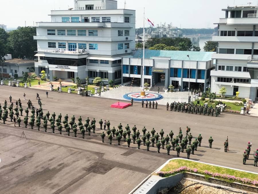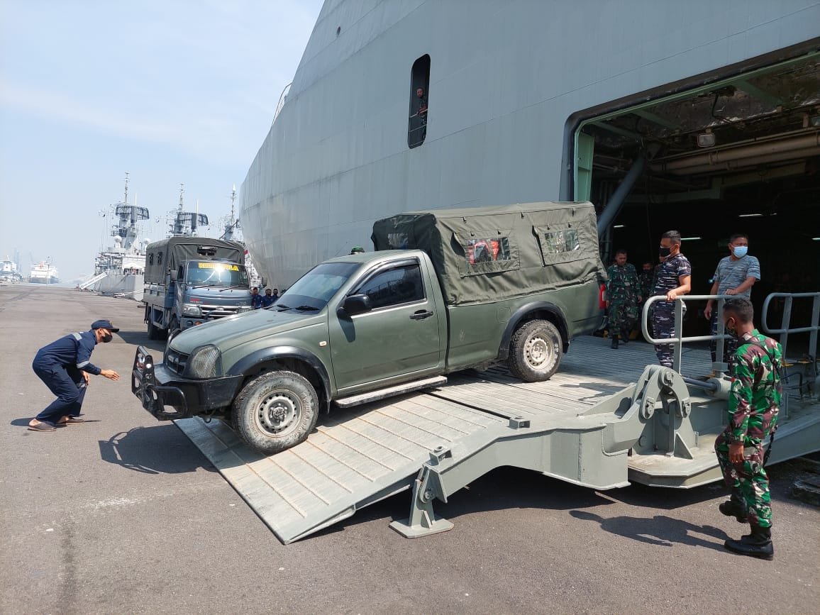 Setelah kemarin tiba dan lego jangkar di perairan Selat Madura untuk menyiapkan kegiatan debarkasi pasukan dan melaksanakan kegiatan docking undocking Landing Craft Unit, hari ini Minggu (17/4/2022).