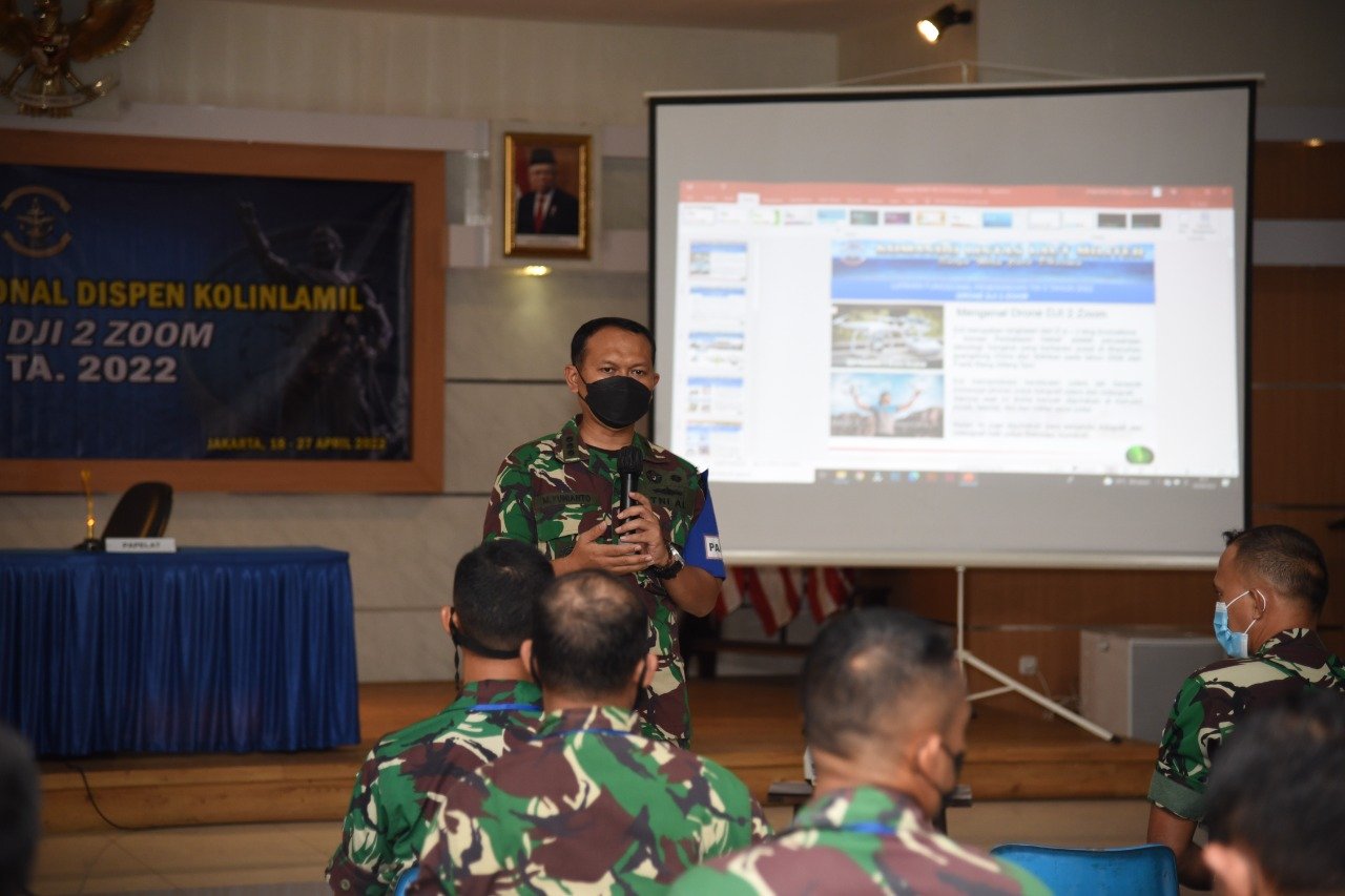 Dinas Penerangan Komando Lintas Laut Militer menggelar Latihan Fungsi Penerangan Triwulan II tahun 2022 dengan materi penggunaan Drone DJI 2 Zoom. Latihan fungsi penerangan ini dibuka oleh Kepala Dinas Penerangan Kolinlamil Kolonel Laut (P) M. Yunianto di Gedung Laut Natuna, Mako Kolinlamil, Tanjung Priok, Jakarta Utara, Senin (18/4/2022).