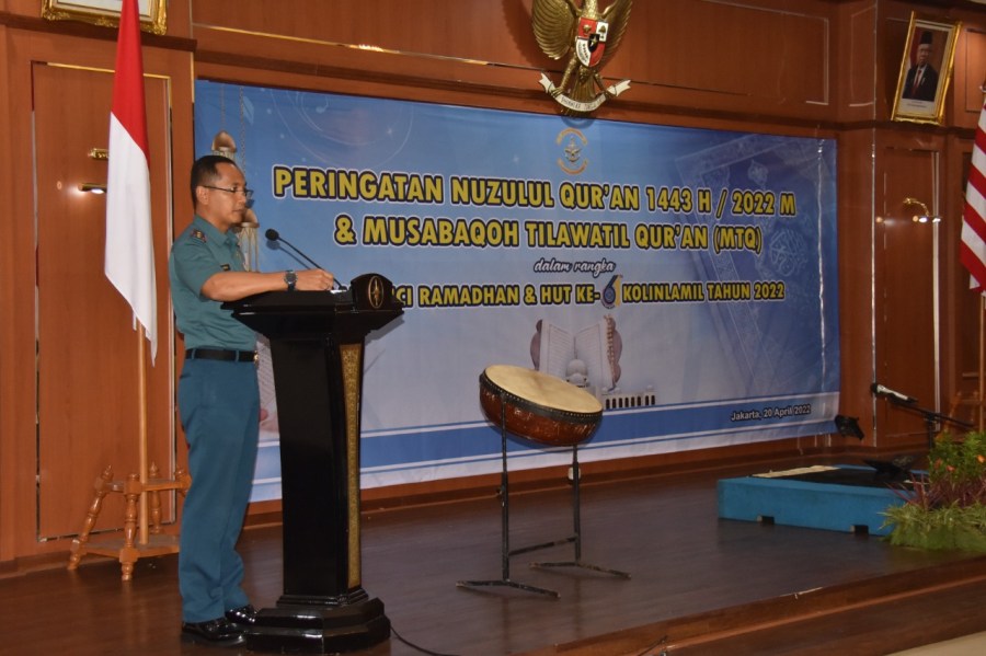 “Melalui peringatan Nuzulul Qur’an ini marilah kita bersama-sama untuk selalu berusaha menjadi orang yang gemar membaca Al Qur’an dan selalu menjaga lidah kita dari perkataan-perkataan kasar agar kelak kita bisa menjadi orang-orang yang ahli surga,” ungkap Panglima Kolinlamil.
