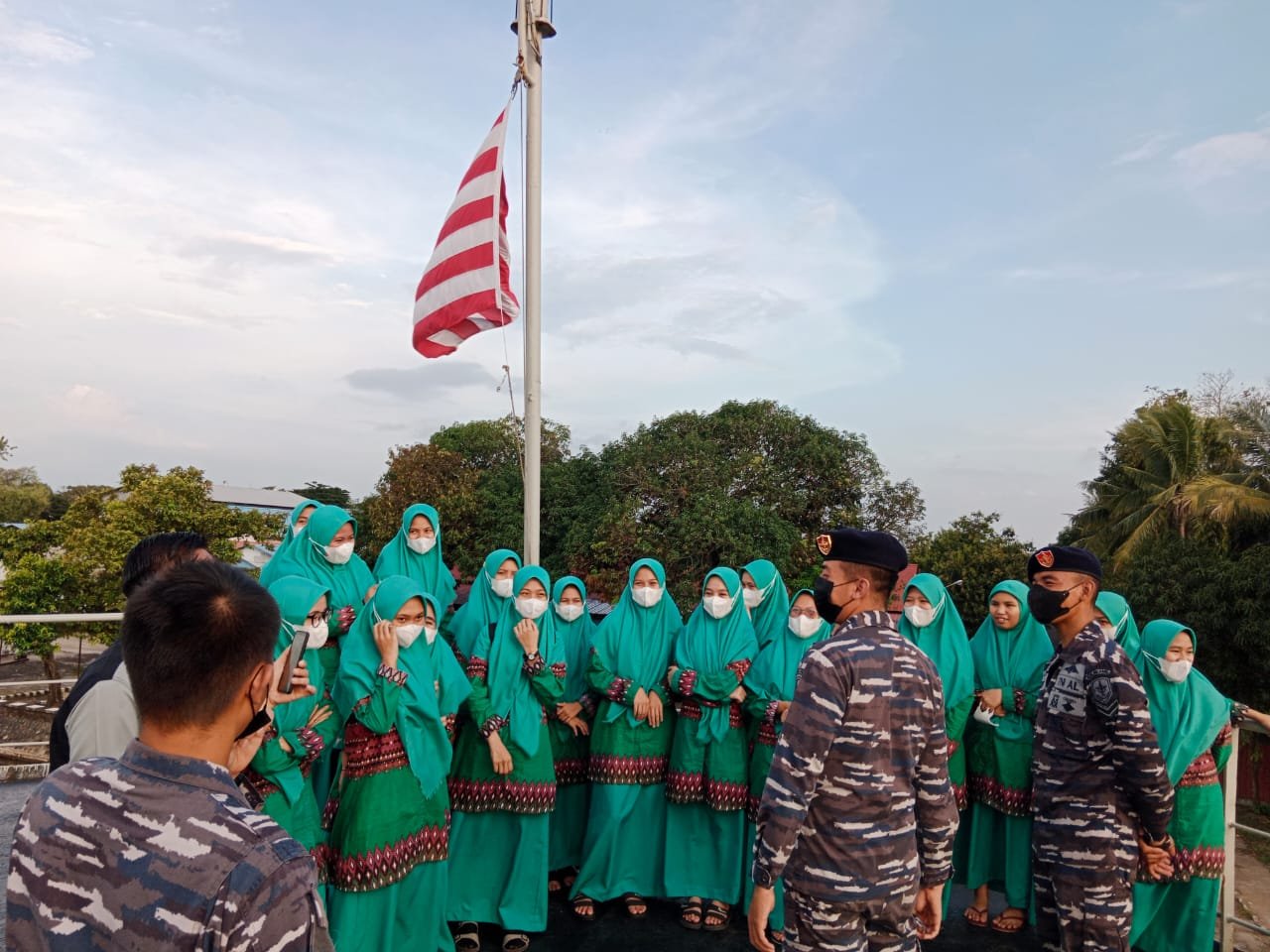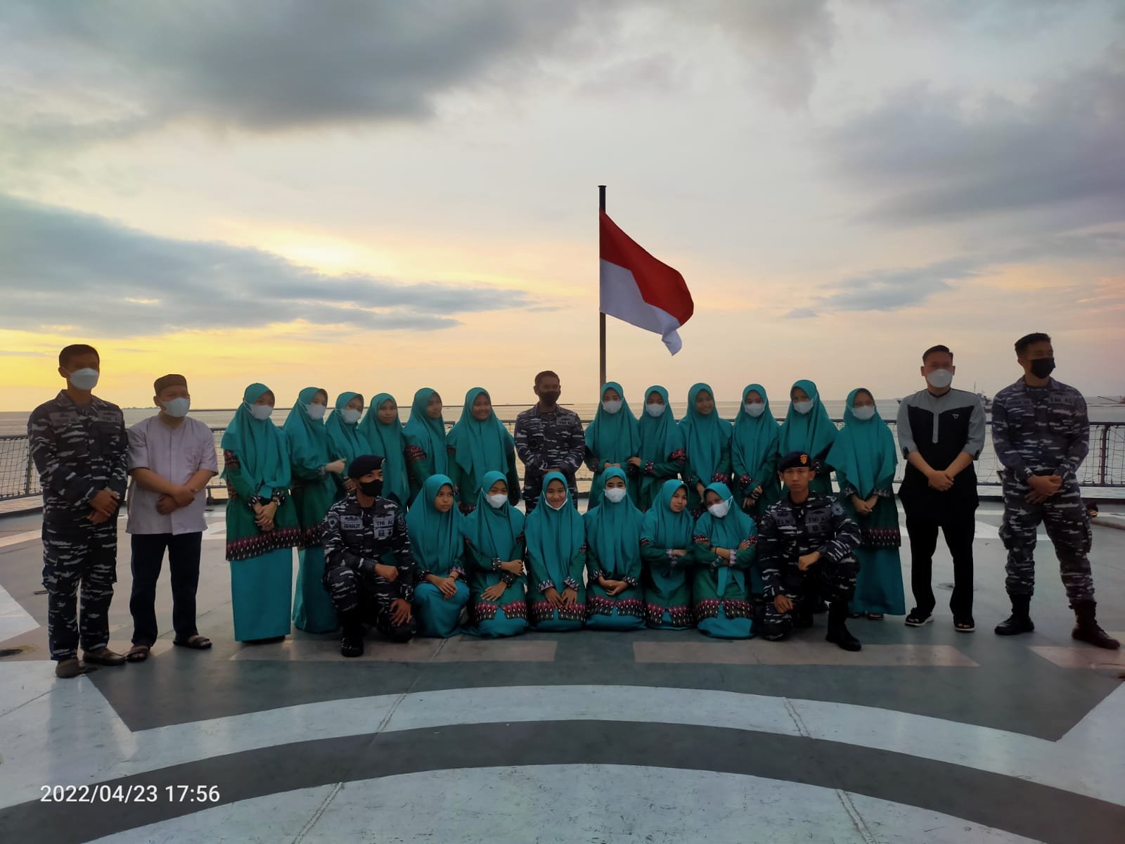 KRI Teluk Bintuni-520 yang saat ini sandar di dermaga Fasharkan TNI AL Makassar, Sabtu (23/4/2022) menerima rombongan tamu spesial. Mereka adalah satriawan dan santriwati dari Panti Asuhan Sejati Muhammadiyah Makasar.