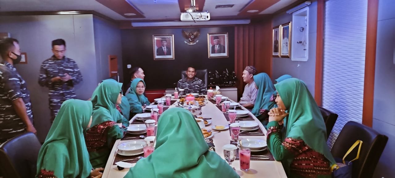 Setelah puas berkeliling KRI Teluk Bintuni-520 serta mengabadikan beberapa moment yang berkesan dan karena waktu sudah menjelang adzan Maghrib, Komandan KRI Teluk Bintuni-520 mengajak para pengasuh dan anak yatim dari Panti Asuhan Sejati Muhammadiyah Makassar untuk membatalkan puasa dan menyantap menu takjil yang telah disediakan.