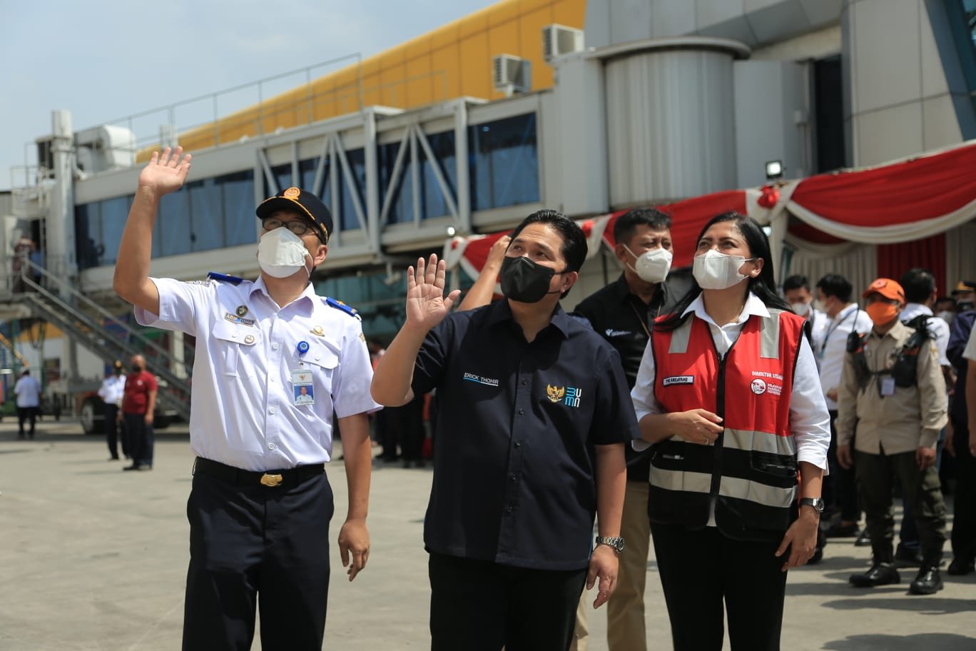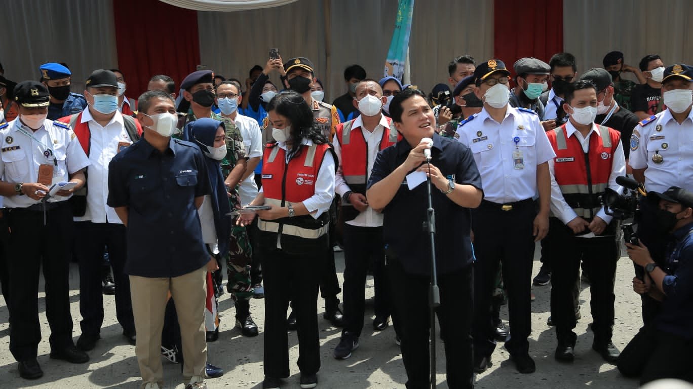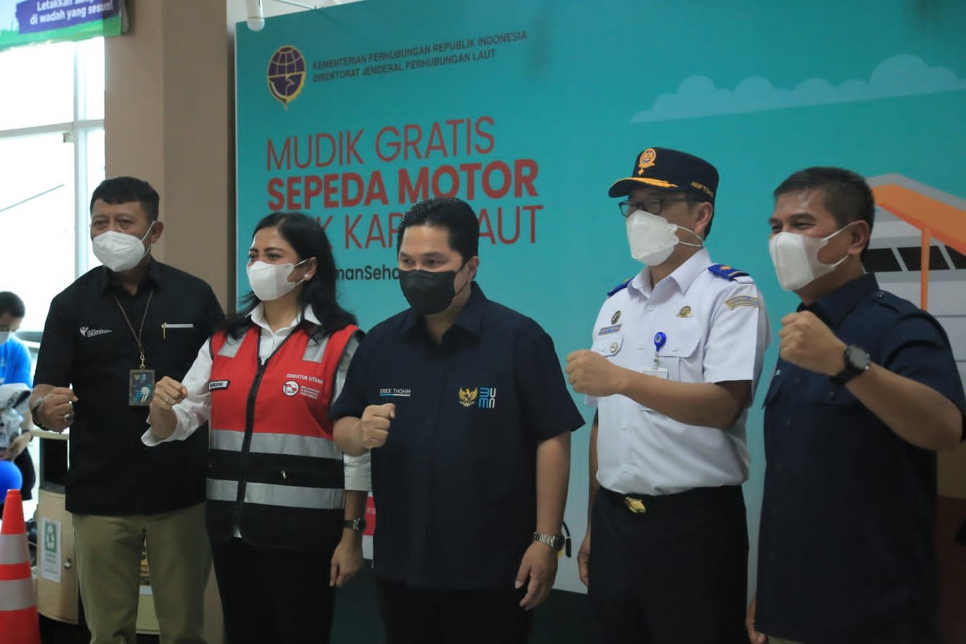 Sebanyak 1.109 orang penumpang kapal KM. Dobonsolo termasuk diantaranya 470 orang peserta mudik gratis, 416 orang peserta biasa dan 216 unit sepeda motor tujuan Semarang dan Surabaya, dilepas Menteri BUMN, Erick Thohir pada pukul 13.30 WIB dari dermaga terminal penumpang pelabuhan Tanjung Priok, Jakarta, hari ini, Selasa (26/4/2022)