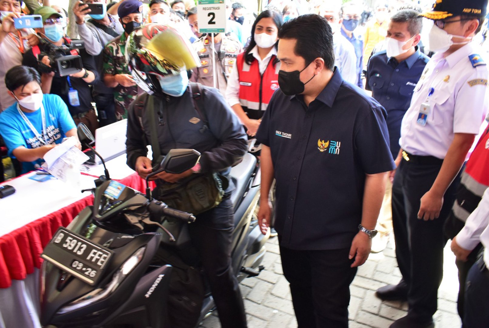 Meninjau kesiapan menangani arus mudik Hari Raya Idul Fitri 1 Syawal 1443 H, Menteri Badan Usaha Milik Negara (BUMN) Erick Thohir kunjungi Terminal Penumpang Nusantara Pura Pelabuhan Tanjung Priok pada Selasa, 26 April 2022. Menteri BUMN RI meninjau langsung kesiapan fasilitas mudik gratis sepeda motor di Terminal Penumpang Nusantara Pura Pelabuhan Tanjung Priok, dengan menggunakan kapal KM Dobonsolo dengan tujuan Semarang -Surabaya. Sebanyak lebih dari 500 orang penumpang dengan lebih dari 240 unit sepeda motor diberangkatkan melalui fasilitas mudik gratis ini.
