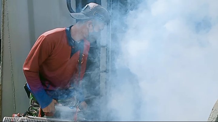 Personel kesehatan Balai Pengobatan Satlinlamil 2 melaksanakan fogging dengan menyisir setiap ruangan-ruangan yang ada di KRI Teluk Lampung-540, khususnya ruangan yang digunakan sebagai messing prajurit. Fogging juga dilakukan di ruang terbuka serta saluran air yang diduga menjadi tempat persembunyian dan berkembang biaknya nyamuk Aedes Aegypti.