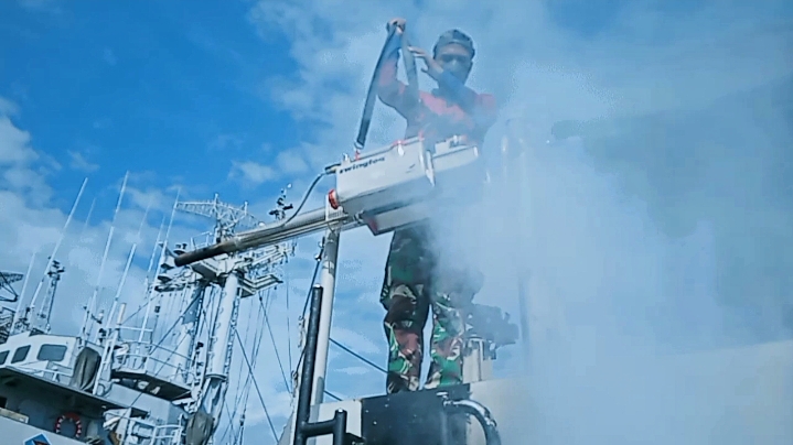 Upaya untuk menciptakan lingkungan yang sehat dan bebas dari ancaman penyebaran penyakit terus dilakukan oleh Dinas Kesehatan Kolinlamil. Dalam rangka mencegah merebaknya penularan penyakit yang ditularkan melalui nyamuk Aedes Aegypti yaitu Demam Berdarah Dengue di lingkungan kapal perang Kolinlamil, KRI Teluk Lampung-540 melaksanakan fogging, Kamis (12/5/2022).