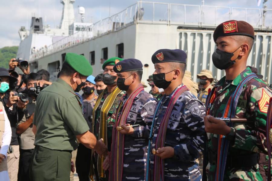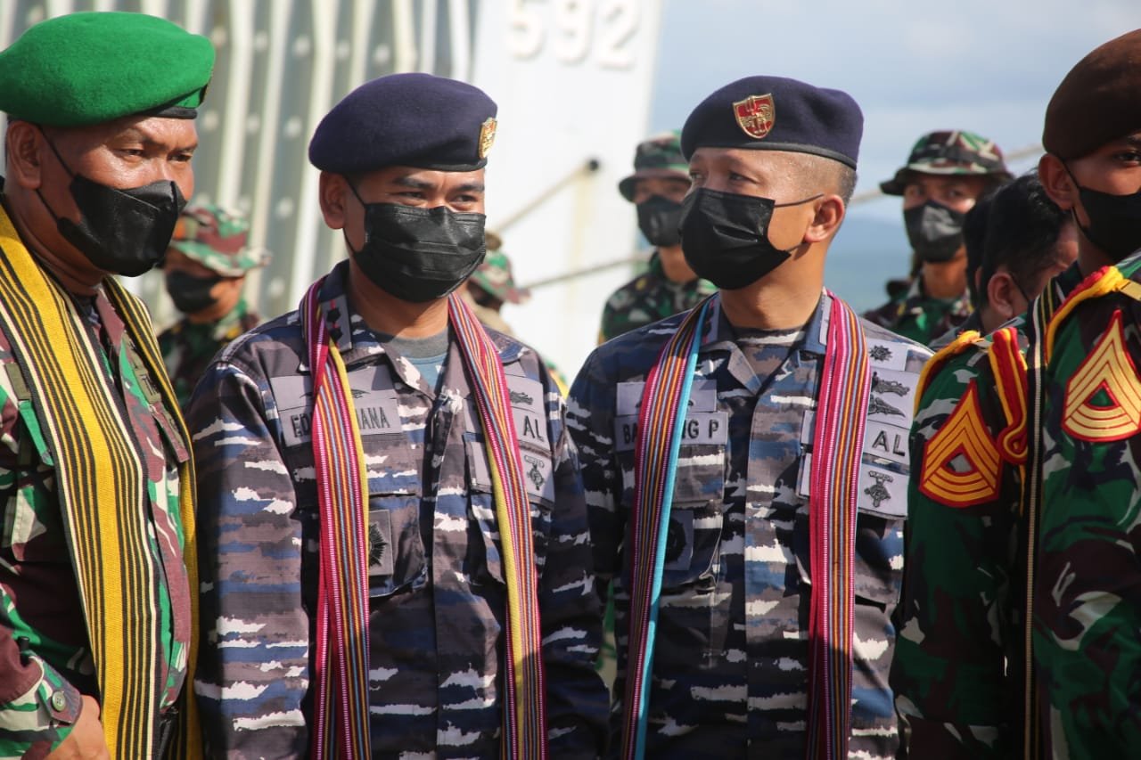 Panglima Komando Lintas Laut Militer Laksda TNI Erwin S. Aldedharma yang menerima laporan posisi kedua KRI yang sedang melaksanakan dukungan angkutan laut Satgas Latsitarda Nusantara XLII tahun 2022 mengucapkan syukur kepada Allah SWT bahwasanya KRI telah tiba dengan selamat di tempat tujuan.