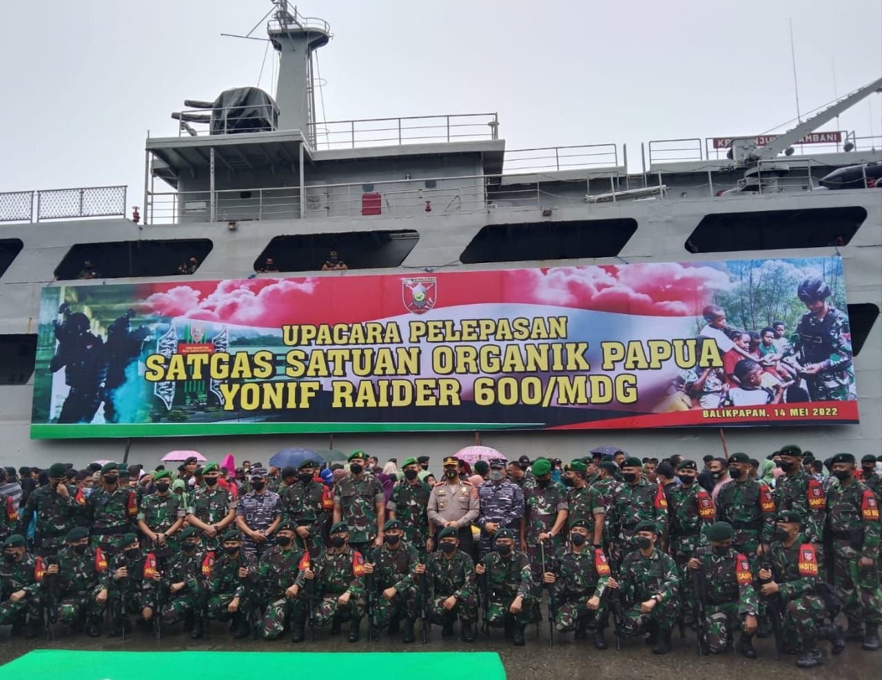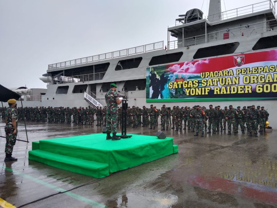 Beberapa saat yang lalu embarkasi pasukan dan materiil telah dilaksanakan di dermaga Pelabuhan Umum Semayang, Balikpapan, Kalimantan Timur sekaligus dilepas keberangkatannya menuju Papua oleh Panglima Kodam VI Mulawarman Mayjen TNI Teguh Pudjo Rumekso.