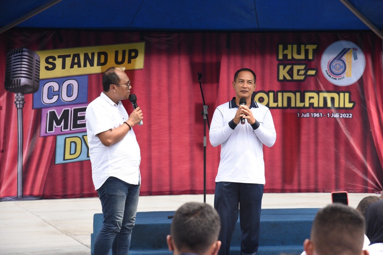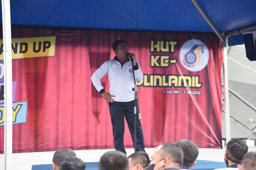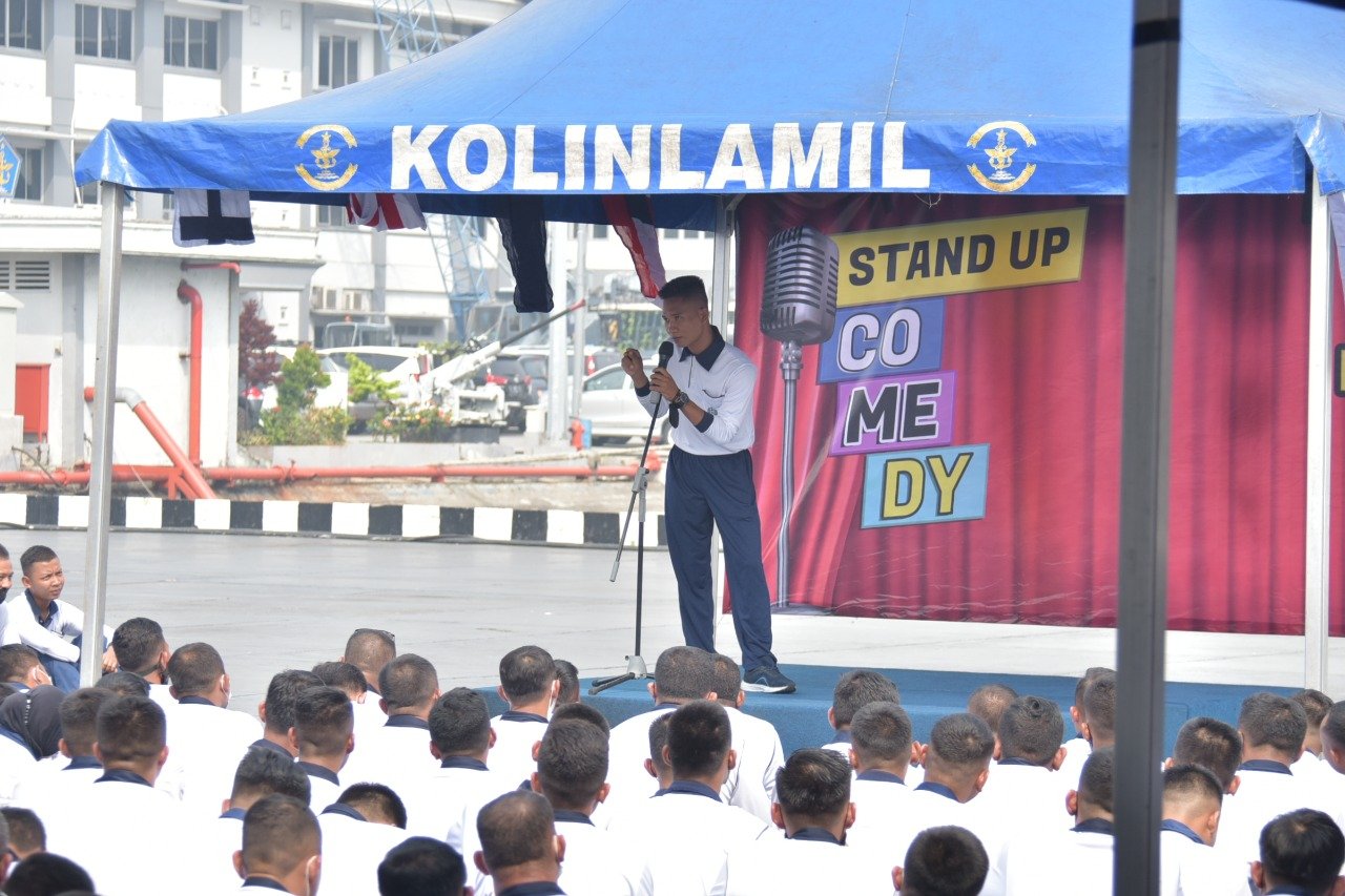 Keceriaan penuh keakraban dan gelak tawa keluarga besar Kolinlamil tampak jelas di awning Selatan Lapangan Mulyono Silam, Mako Kolinlamil, Tanjung Priok, Jakarta Utara pagi hari ini, Selasa (17/5/2022) ketika satu persatu peserta lomba stand-up comedy menampilkan kelucuannya atau bahkan tidak lucu namun tetap mengundang gelak tawa.
