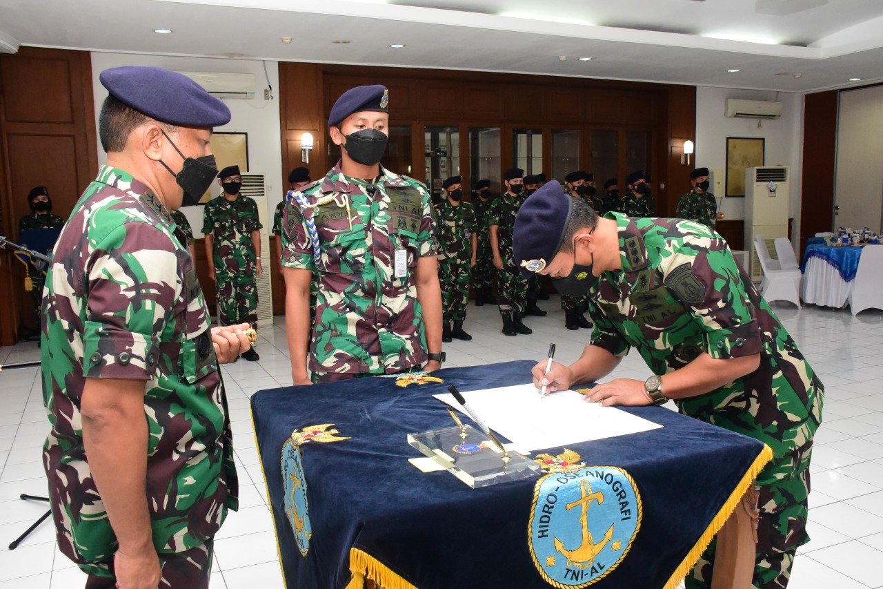 Komandan Pusat Hidro-Oseanografi TNI Angkatan Laut (Danpushidrosal) Laksamana Madya TNI Nurhidayat mengukuhkan Kolonel Laut (P) Fajar Rusdianto sebagai Asisten Pengamanan, Kerja Sama dan Perbatasan (Aspamkersamtas) Danpushidrosal dalam acara pengukuhan yang berlangsung di Ruang Lounge Room Perwira, Mako Pushidrosal, Jalan Pantai Kuta V/I, Ancol Timur, Jakarta Utara. Selasa (24/5/2022).