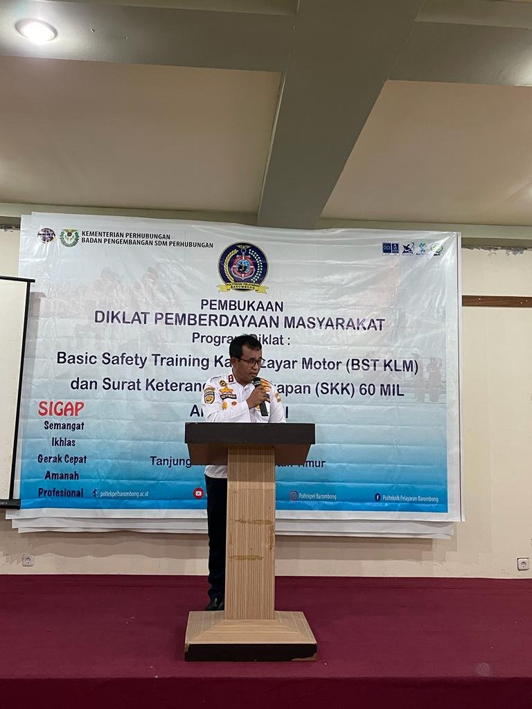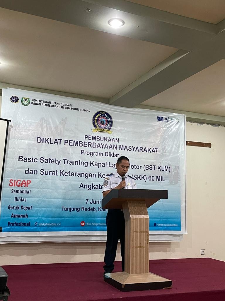 Kantor Unit Penyelanggara Pelabuhan (KUPP) Tanjung Redeb bekerja sama dengan Politeknik Pelayaran Barombong Makassar, melaksanakan pendidikan dan pelatihan pemberdayaan masyarakat BST dan KLM dan Surat Keterangan Kecakapan 60 Mil (SKK 60) dengan Diklat GRATIS untuk nelayan di Bumi Batiwakkal Kabupaten Berau, Selasa (7/6/2022).