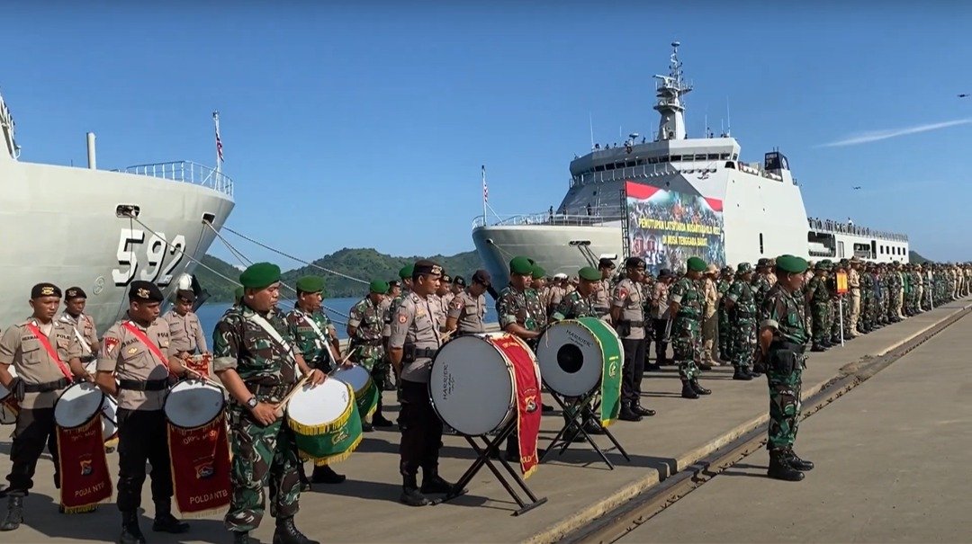 Panglima Komando Lintas Laut Militer Laksda TNI Erwin S. Aldedharma melalui Asisten Operasi Pangkolinlamil Kolonel Laut (P) Nanan Isnandar menyampaikan pesannya kepada Komandan KRI BJM-592 dan Komandan KRI BAC-593 agar melaksanakan penugasan dukungan angkutan militer pergeseran personel dan materiil Satgas Latsitarda Nusantara XLII dengan sebaik-baiknya.