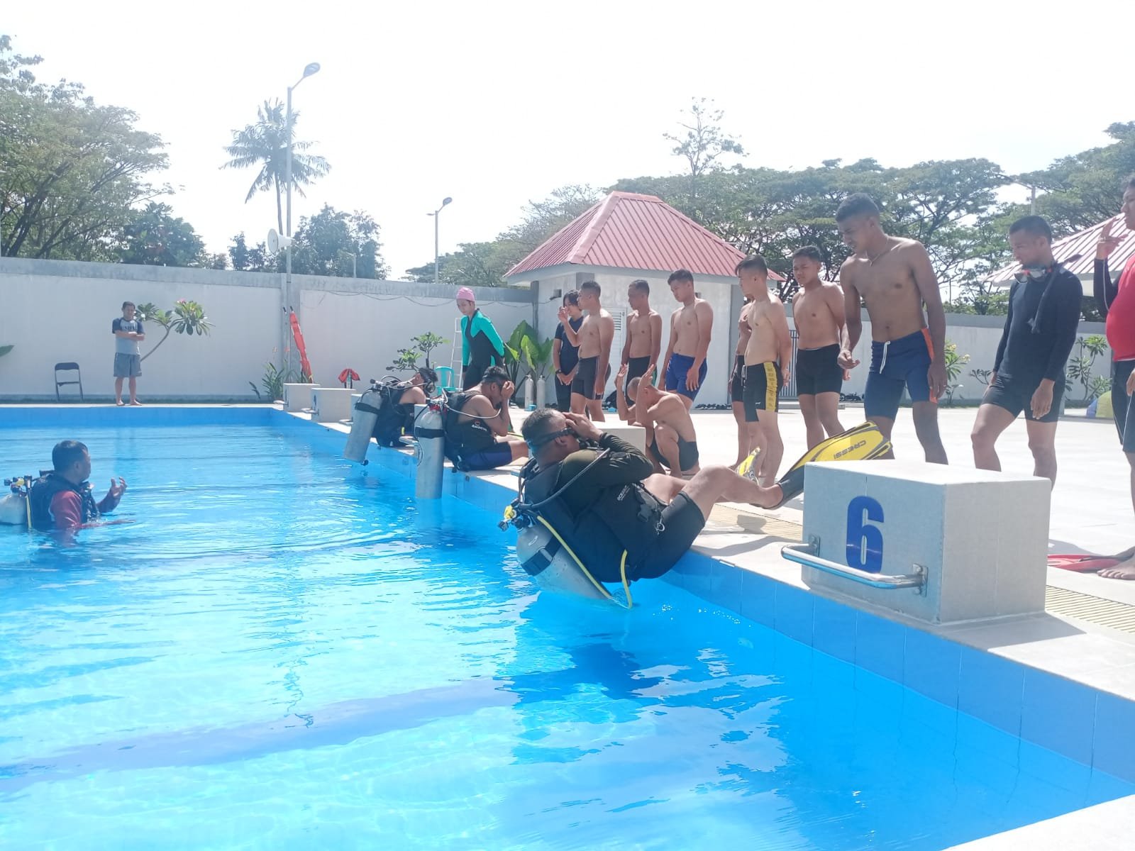Setelah beberapa hari sebelumnya mendapatkan pembekalan teori dan pengenalan tentang peralatan Scuba, program latihan Triwulan II tahun 2022 berupa pelatihan selam dasar dilanjutkan dengan latihan praktek di kolam renang Tirto Segoro 5 Lantamal VI, Makassar, Senin (13/6/2022).