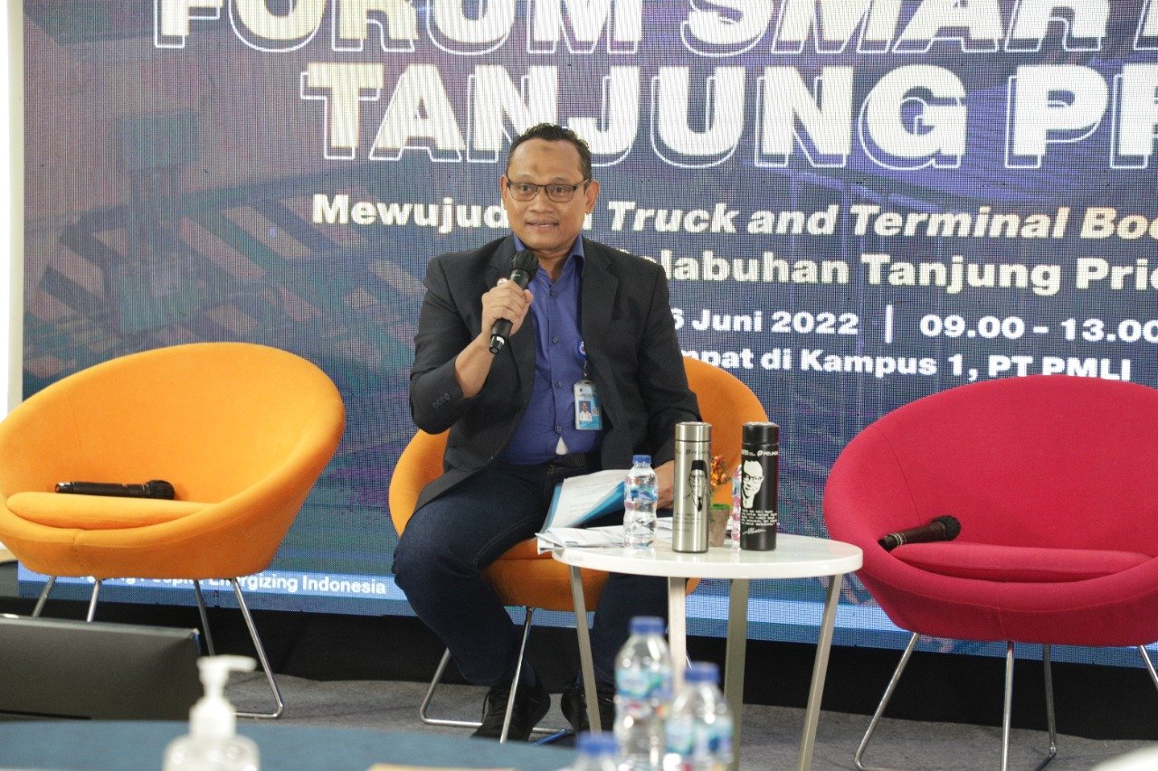 Capt Mugen menjelaskan Forum Smart Port ini diselenggarakan untuk membangun sinergi dan kolaborasi di lingkungan Pelabuhan Tanjung Priok dalam mempercepat terwujudnya National Logistic Ecosystem (NLE) di Pelabuhan melalui pelayanan berbasis digital. Khususnya pelayanan gate terminal dengan melakukan pengaturan kedatangan truk melalui Truck and Terminal Booking System (TTBS).