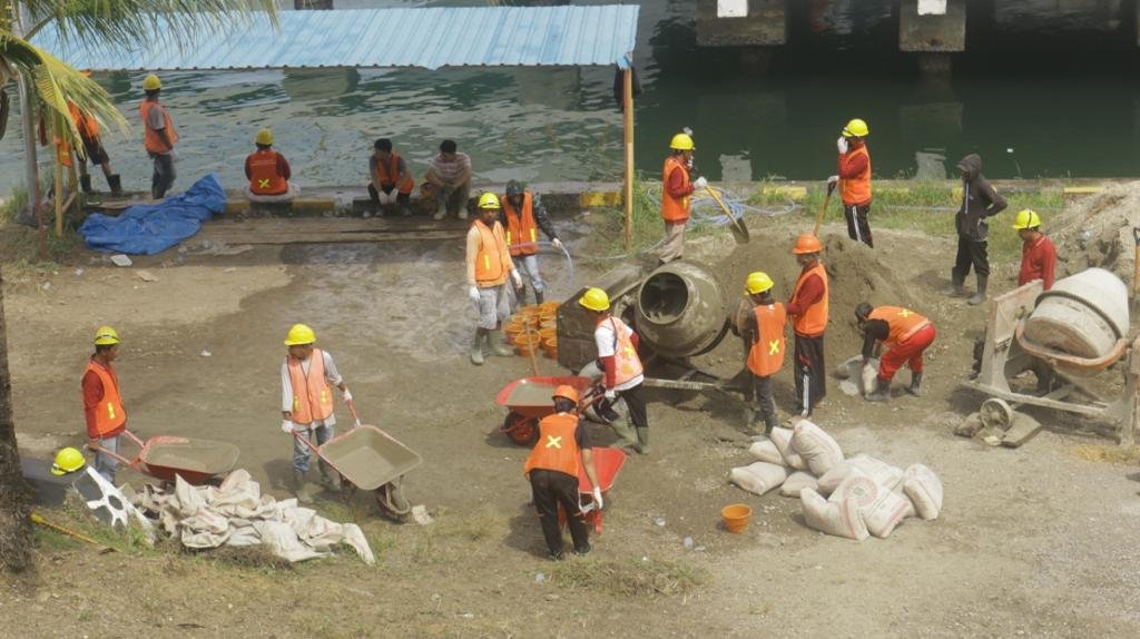 “Kegiatan Padat Karya ini berlangsung selama kurang lebih 7 hari. Pekerjaannya meliputi pengecoran jalan di sekitar instalasi bengkel, lapangan bouy dan gudang logistik. Kemudian pengecatan dermaga kenavigasian serta pembersihan lingkungan sekitarnya,” ujar Abdul Kasim.