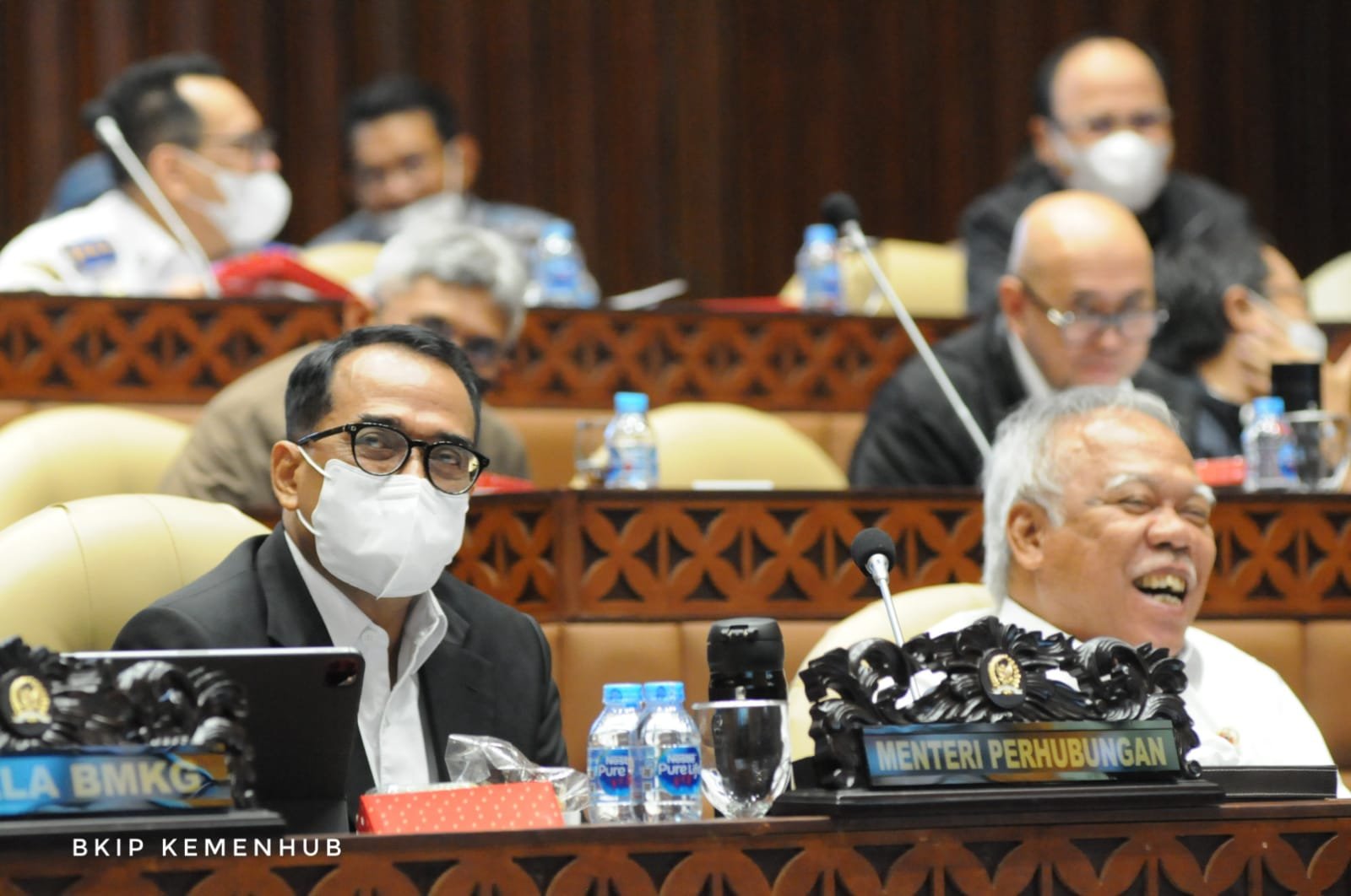 Turut hadir dalam rapat kerja di DPR yaitu Menteri PUPR Basuki Hadimuljono, Kakorlantas Polri Irjen Pol Firman Santyabudi, Kepala Basarnas Marsekal Madya TNI Henri Alfiandi dan Perwakilan BMKG. (Red-MM)