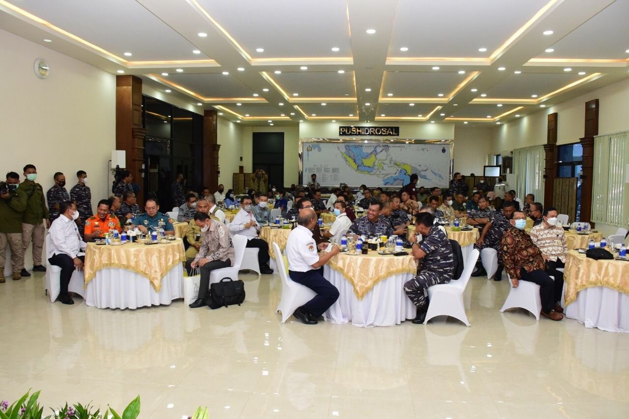 Mewakili Panglima Komando Lintas Laut Militer Laksda TNI Erwin S Aldedharma, Kepala Staf Komando Lintas Laut Militer Laksma TNI Singgih Sugiarto mengikuti acara coffee morning bersama stakeholder dan soft launching buku Ekspedisi Jala Citra I “Aurora” bertajuk “Menguak Kekayaan Bawah Laut Indonesia” yang berlangsung di Ruang Serbaguna Mas Pardi Pushidrosal, Ancol, Jakarta Utara, Selasa (21/6/2022).