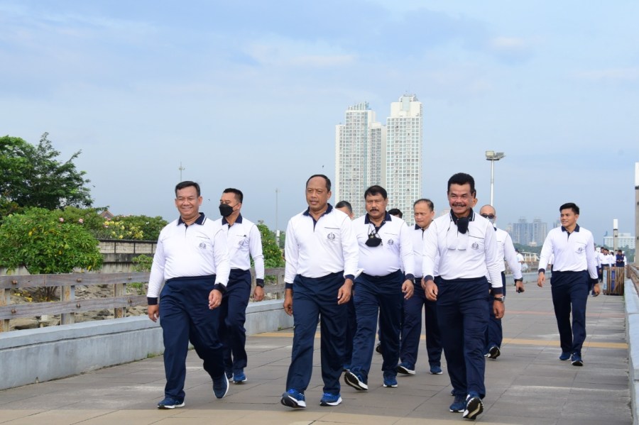 Guna membangun kebersamaan dan rasa kekeluargaan, keluarga besar Pusat Hidro-Oseanografi TNI Angkatan Laut (Pushidrosal) menggelar olah raga bersama di Lapangan Mako Pushidrosal, Jalan Pantai Kuta V/I, Ancol Timur, Jakarta Utara. Selasa (28/6/2022).