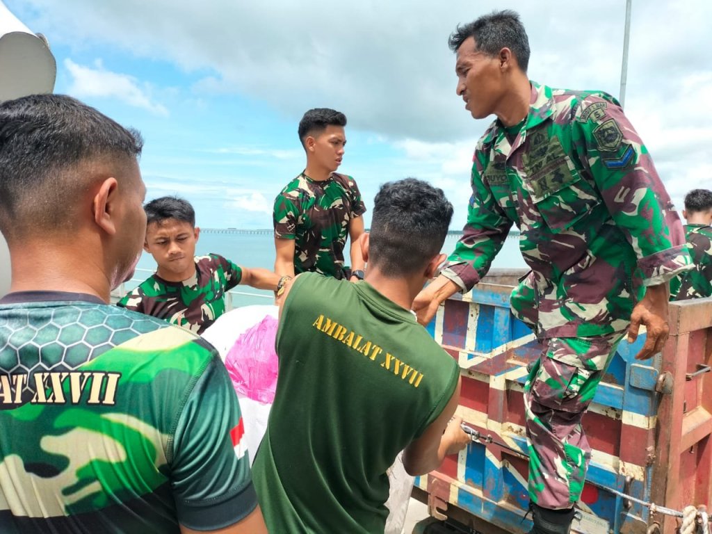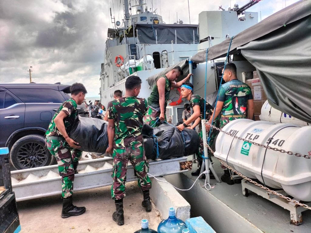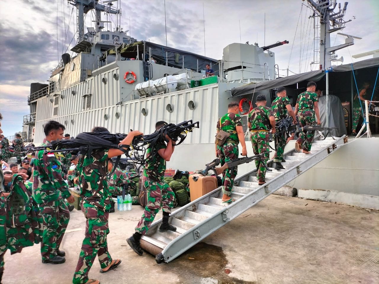 Tiba di dermaga Sei Pancang Sebatik, Nunukan, Kalimantan Utara, KRI Teluk Lampung-540 segera melaksanakan debarkasi dan embarkasi pasukan Marinir Pasmar 2 yang tergabung dalam Operasi Pengamanan Ambalat, Sabtu (2/7/2022).