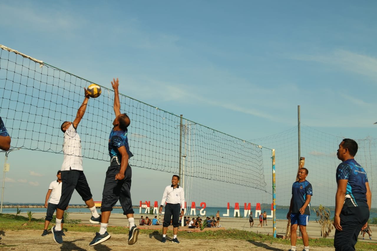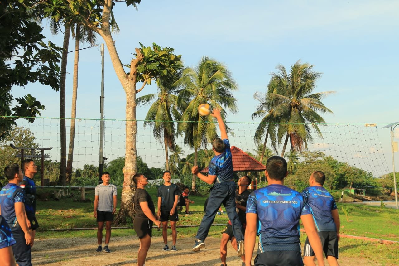 Dalam rangka pembinaan fisik agar tubuh tetap bugar sekaligus mengisi waktu sandar dengan kegiatan yang bermanfaat, prajurit KRI Teluk Parigi-539 melaksanakan olahraga bersama prajurit Lanal Saumlaki dengan melakukan pertandingan persahabatan bola voli di lapangan bola voli Lanal Saumlaki, Maluku, Selasa (5/7/2022).