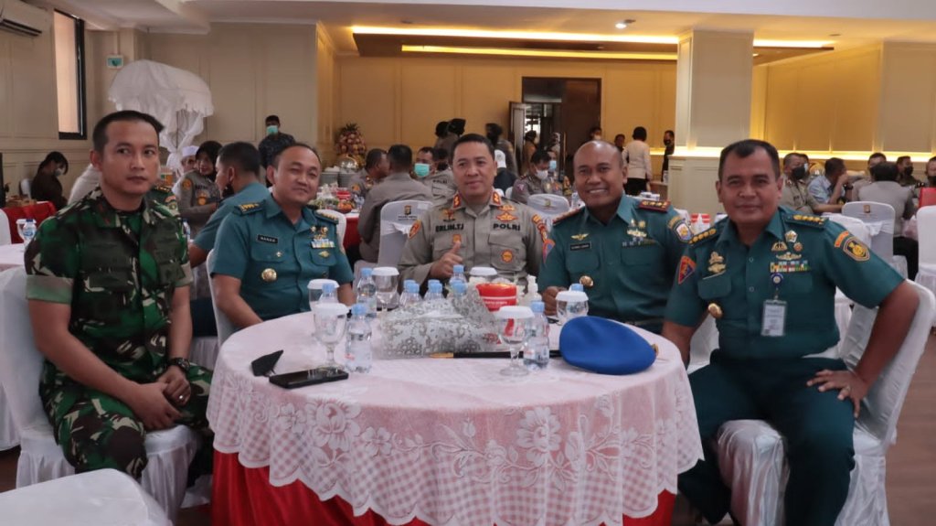Asisten operasi Panglima Kolinlamil Kolonel Laut (P) Nanan Isnandar mewakili Panglima Komando Lintas Laut Militer Laksda TNI Erwin S. Aldedharma memenuhi undangan Kapolres Metro Jakarta Utara Kombes Pol Wibowo dalam acara tasyakuran HUT Bhayangkara tahun 2022 bertempat di Aula Mapolres, Tanjung Priok, Jakarta Utara, Kamis (7/7/2022).