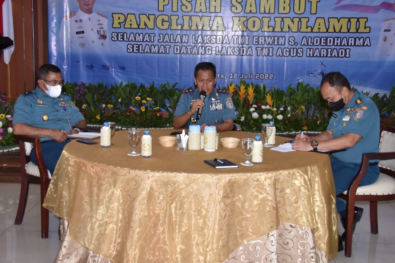 Sebelum mengakhiri arahannya, Panglima Kolinlamil beberapa hal sebagai pedoman dalam bekerja yaitu siapkan software sebagai pegangan dalam melaksanakan tugas sesuai standar operasional prosedur, ketersediaan hardware berupa peralatan maupun sarana prasarana guna mendukung dan memudahkan dalam melaksanakan pekerjaan, ciptakan suasana kerja yang kondusif, bangun komunikasi dua arah yang seimbang antara atasan dan bawahan dan yang terakhir adalah berikan kesejahteraan untuk anak buah. Kesejahteraan tidak harus berbentuk materiil namun perhatian yang tulus ikhlas dan meyakinkan anak buah pulang ke rumah dengan tetap tersenyum ke keluarganya termasuk bentuk kesejahteraan.